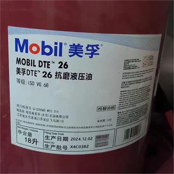 美孚力图H46DTE25工业润滑油液压油防腐防锈机械挖土机堆高机208