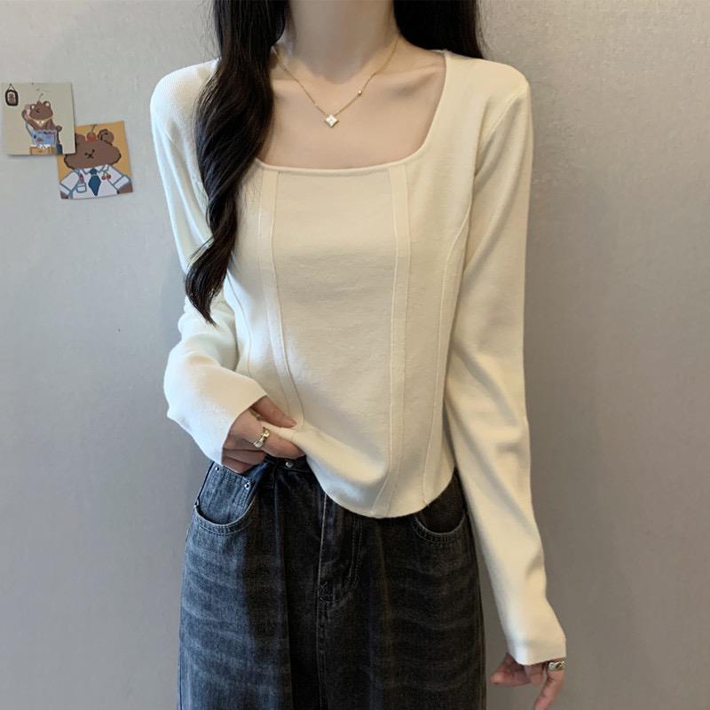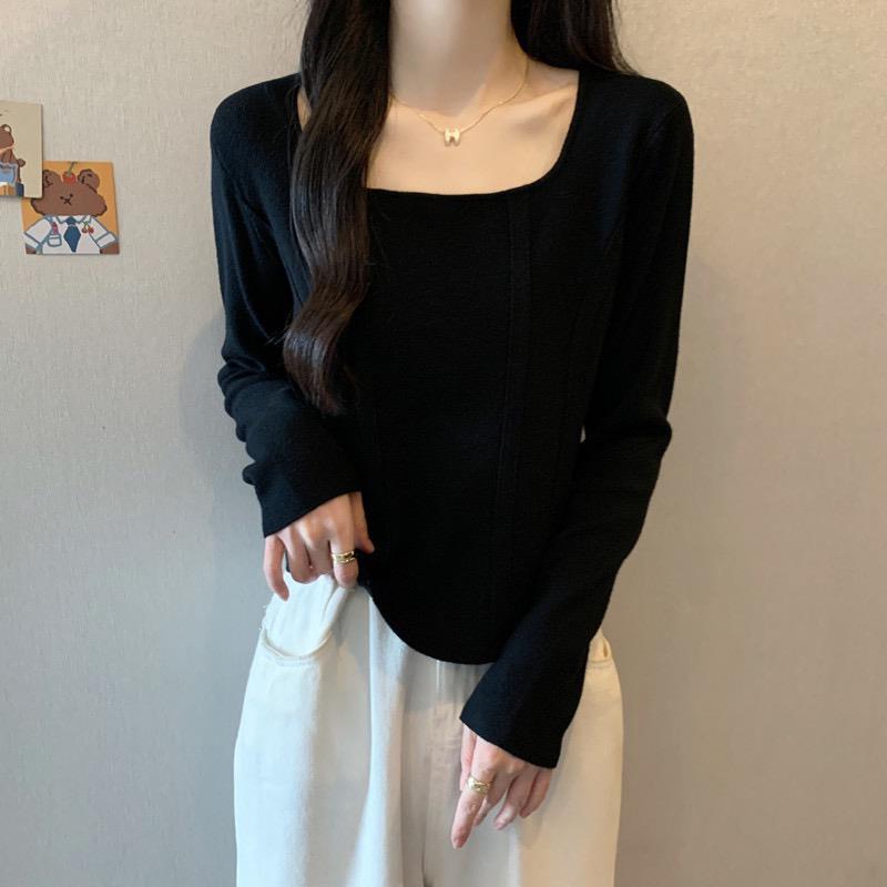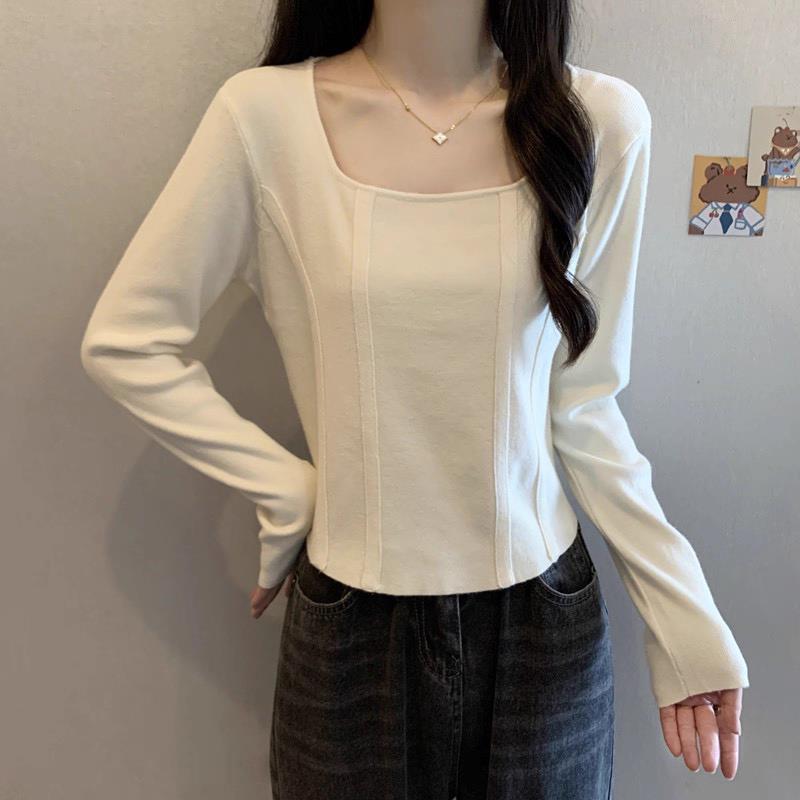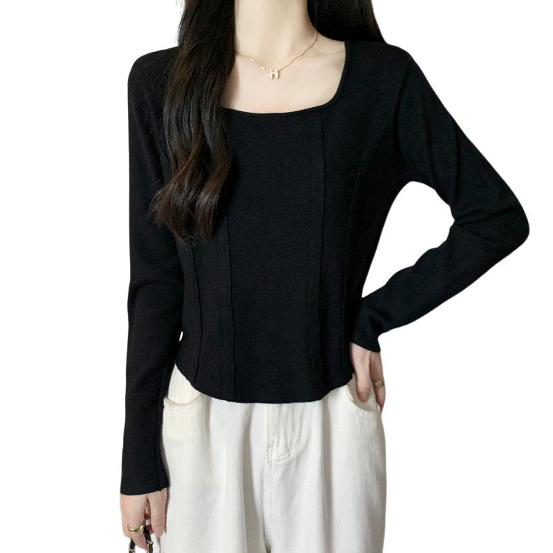 毛衣女修身 胖mm遮肚子方领针织衫 显瘦感打底上衣1014c 大码 冬季
