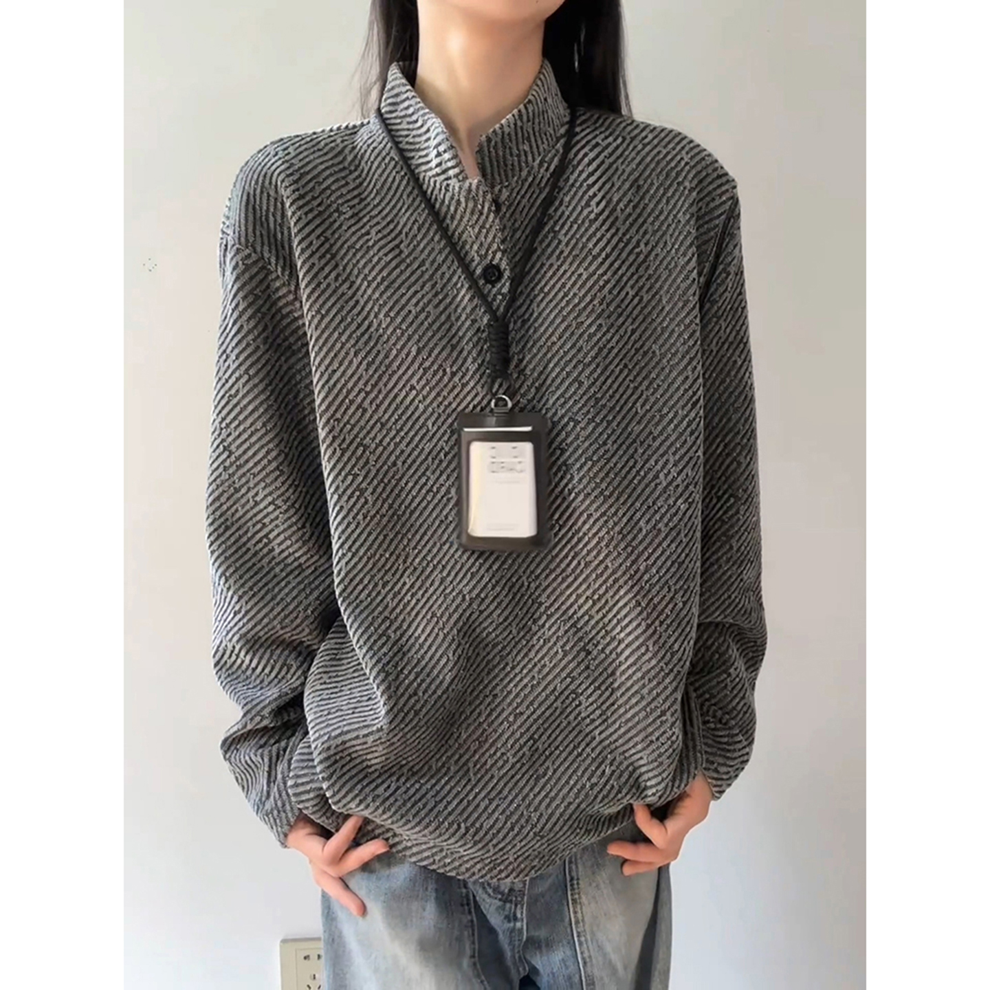 雪尼尔青少年卫衣重磅立领内搭打底衫 男秋季 polo衫 灰色亨利领长袖