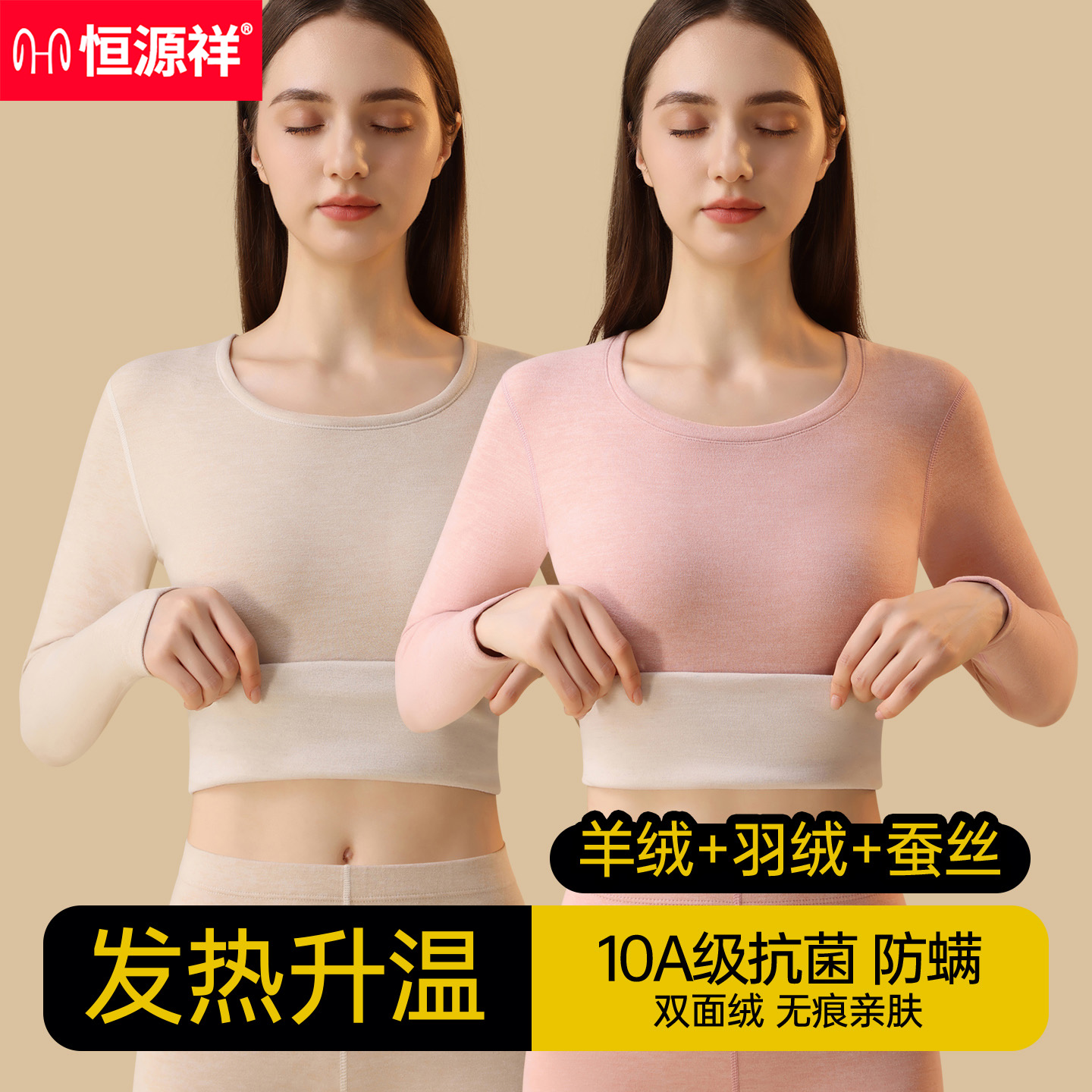 德绒发热加绒保暖内衣羊绒蚕丝美肤衣 女2025新款 猫人秋衣秋裤 套装
