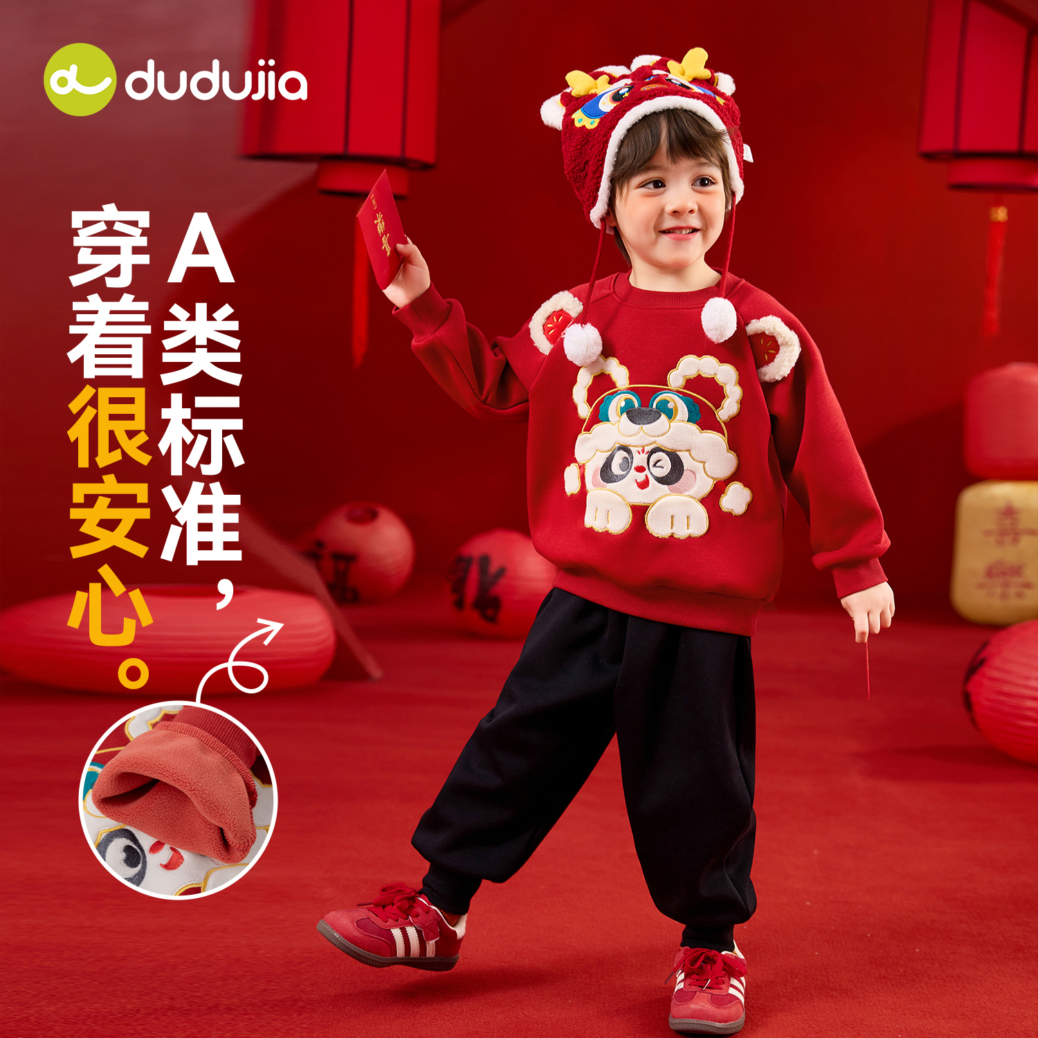 嘟嘟家儿童冬季 上新 卫衣卫裤 套装 加厚上衣 男女童冬款 国风年装