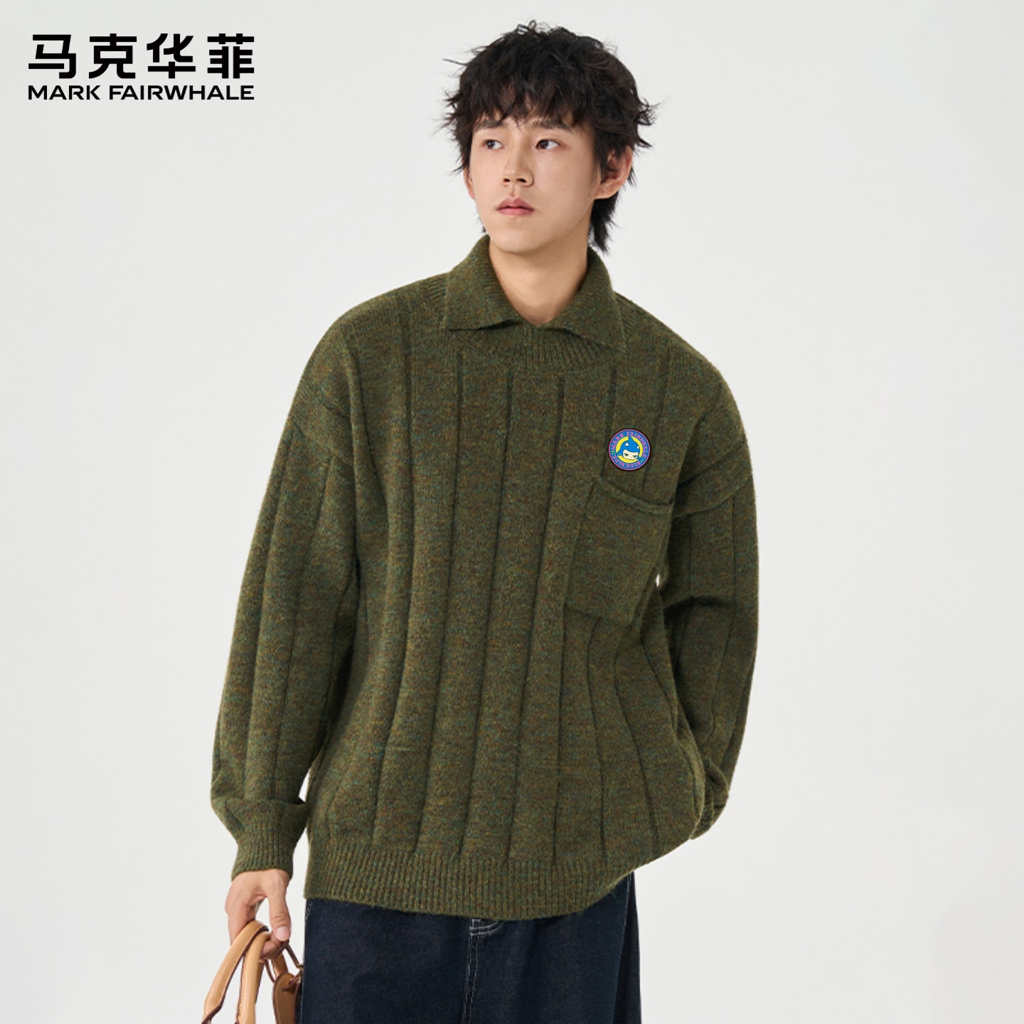 宽松毛衣外套 新款 MAMC拼毛坑条翻领慵懒上衣女针织开衫 2025秋季