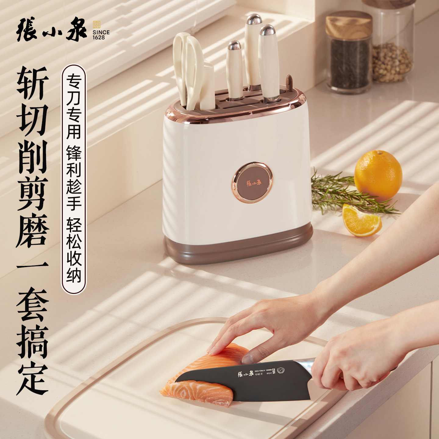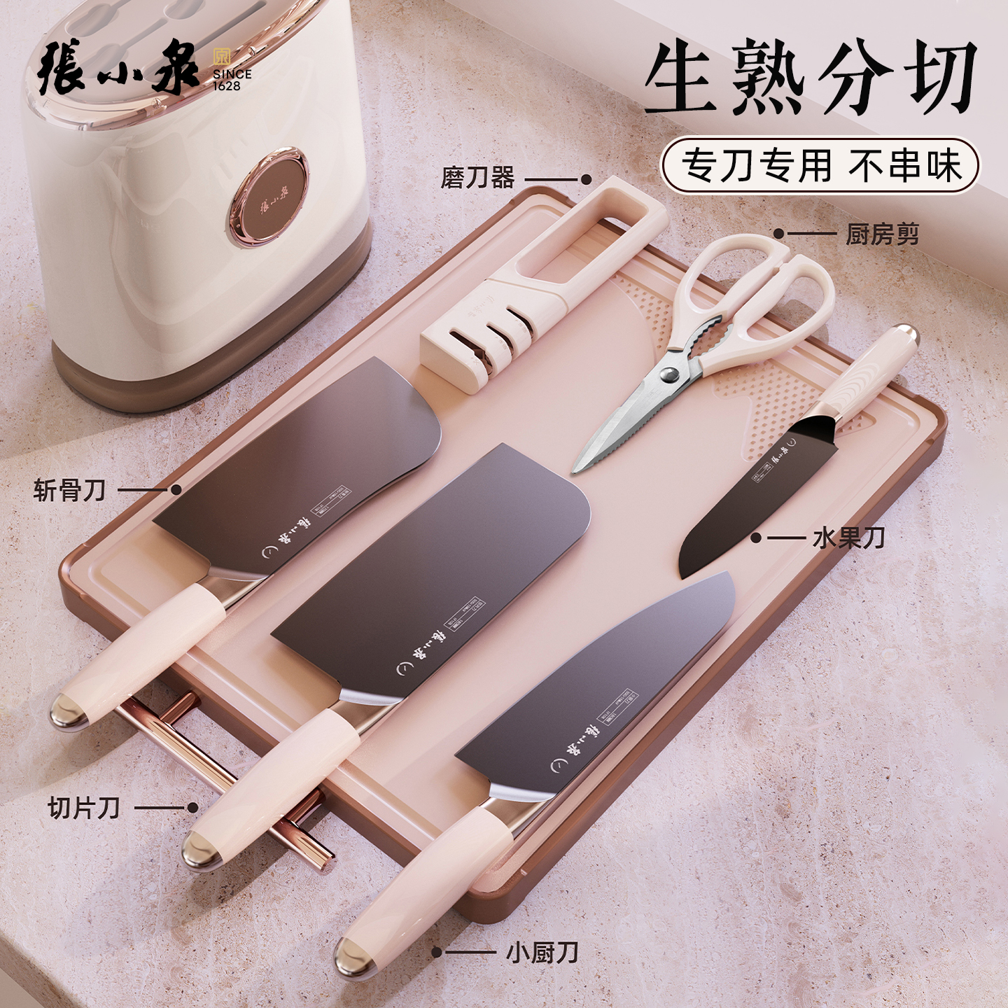 张小泉厨房刀具套装 家用菜刀全套组合不锈钢刀架切菜刀二合一