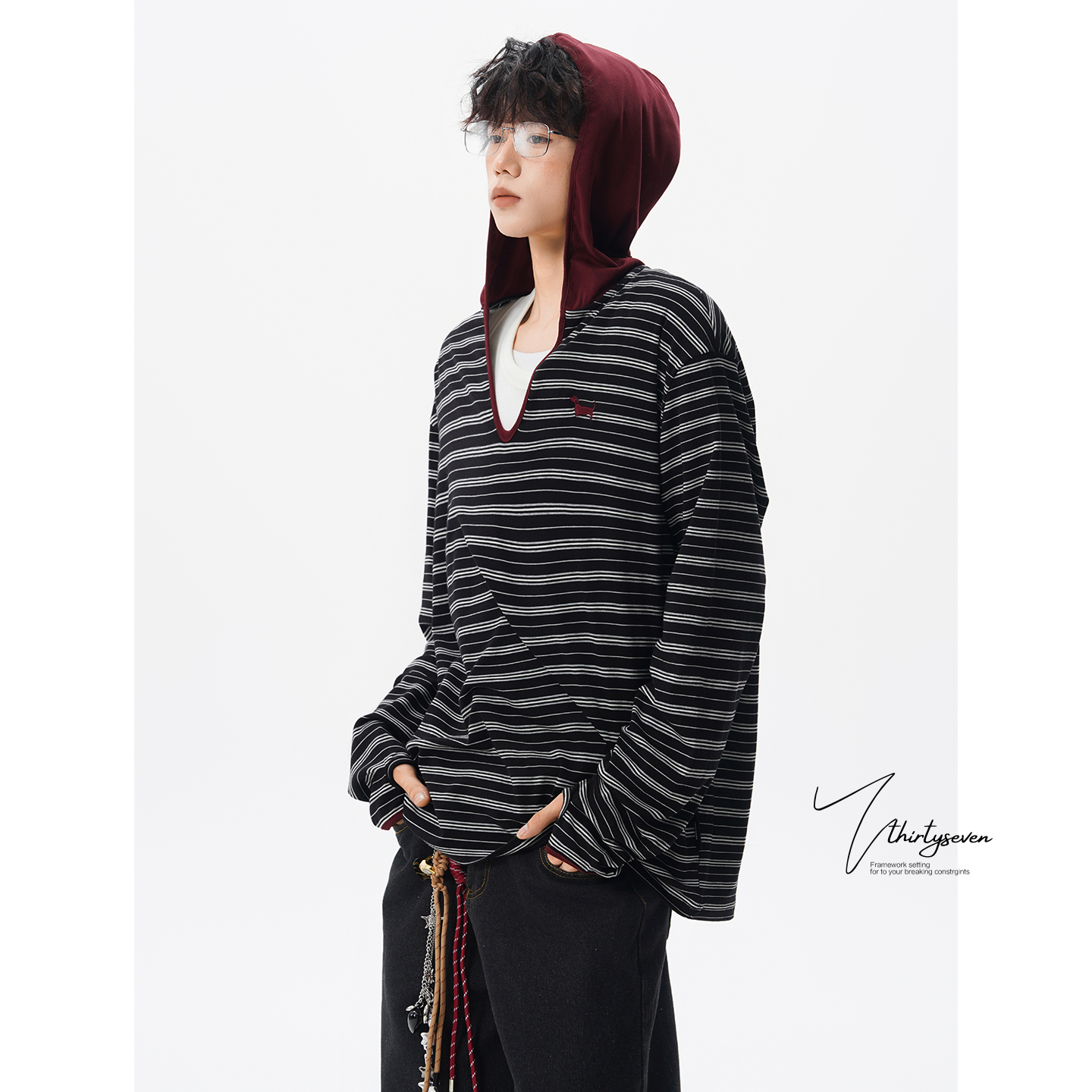 加绒加厚美式 春秋季 连帽oversize外套 爆款 撞色插肩卫衣女2025新款