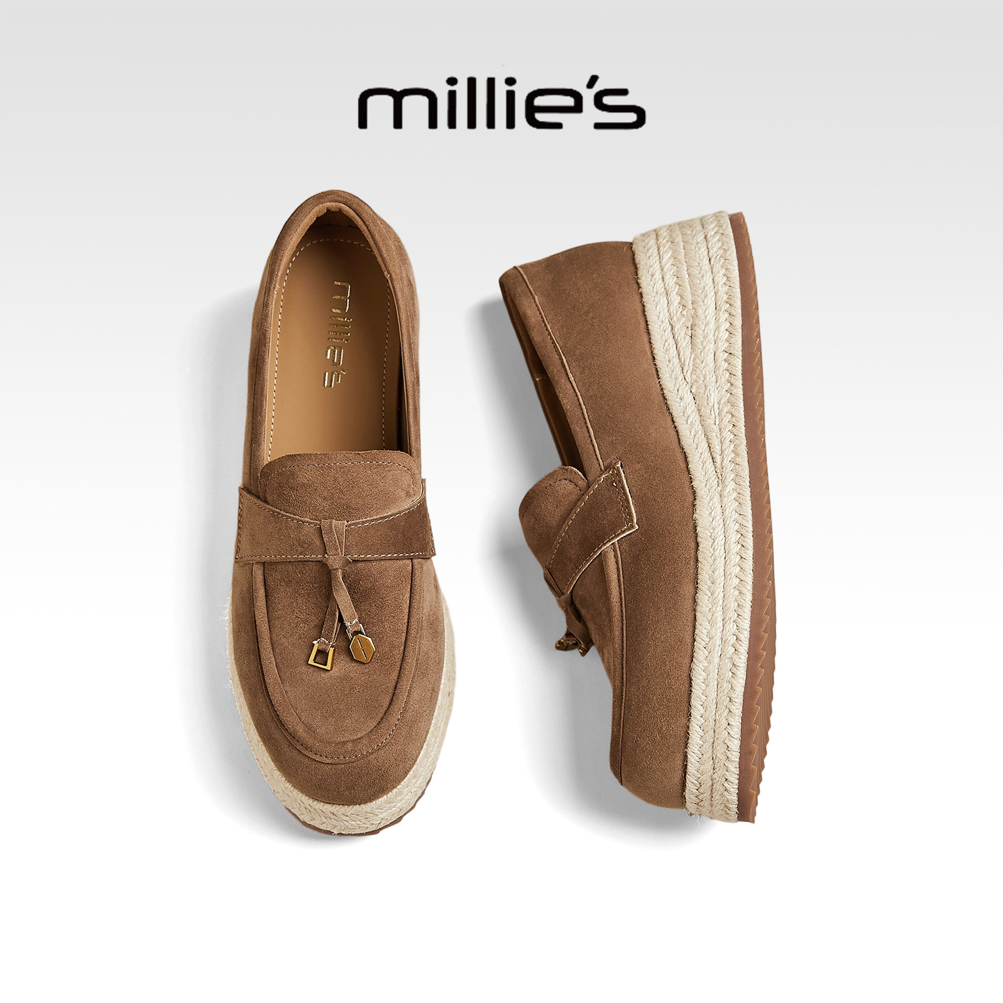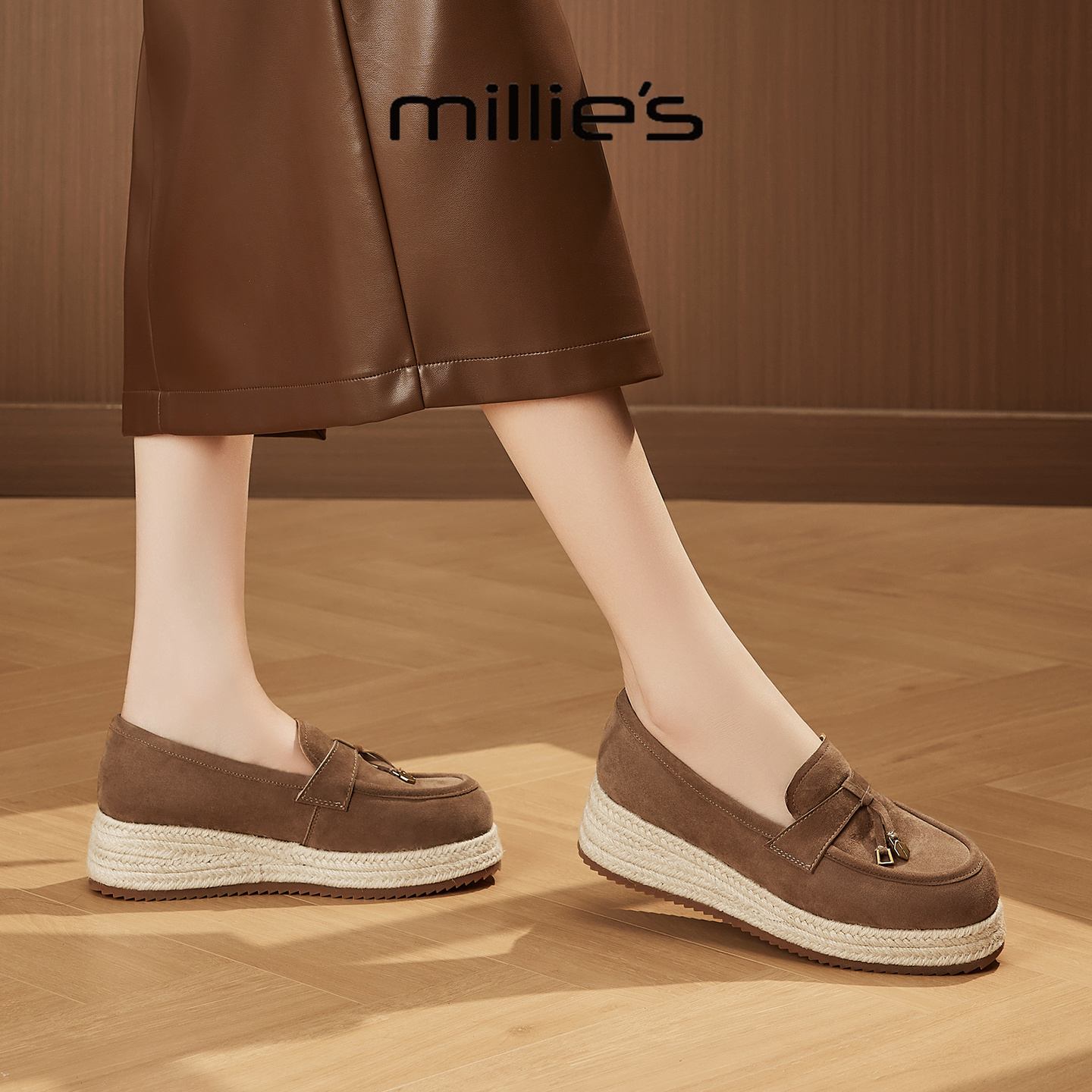 厚底乐福鞋 女新款 秋季 MILLIE 单鞋 妙丽一脚蹬草编渔夫鞋 松糕鞋