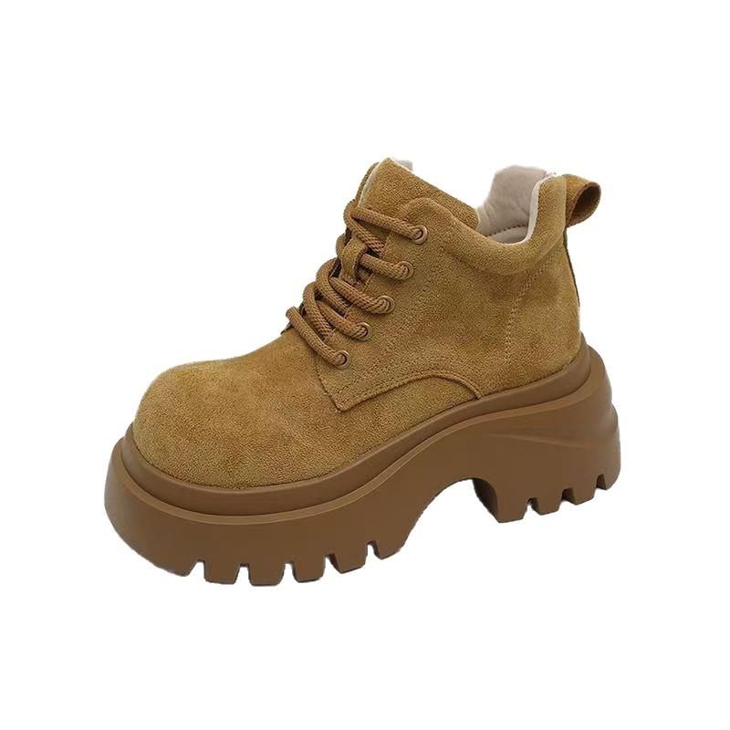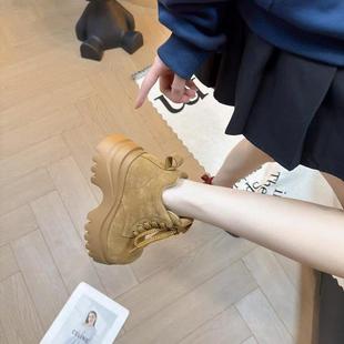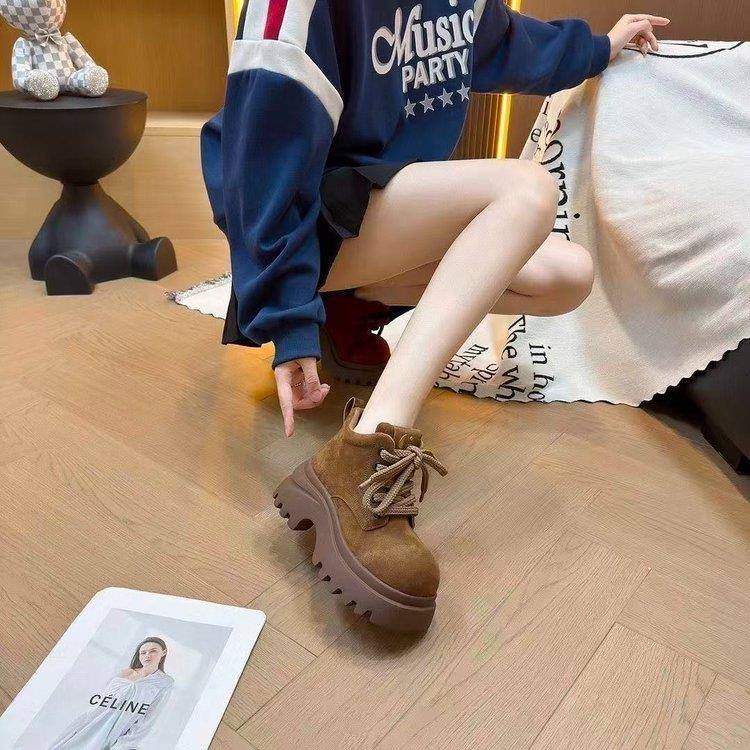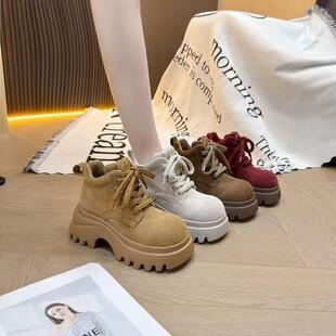 厚底气质马丁靴女2025年新款 英伦风系带短筒靴小个子增高靴子 秋季