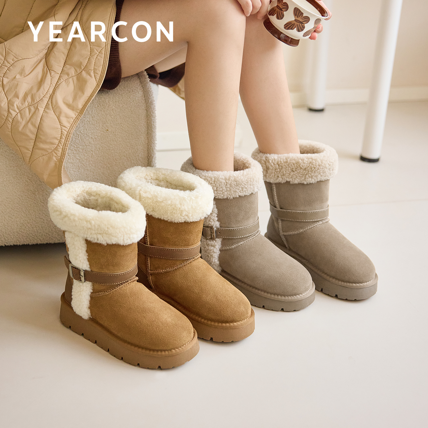 意尔康真皮东北雪地靴女2025冬新款 加绒加厚防滑防水保暖增高棉鞋