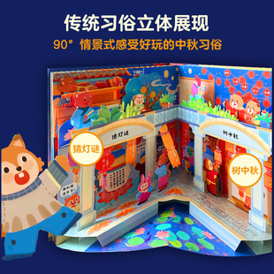 8岁幼儿中秋礼物亲子互动有关中秋节月亮 绘本故事书 儿童3D立体翻翻书3 2025圆耳熊找月亮中秋节篇传统节日立体书新版