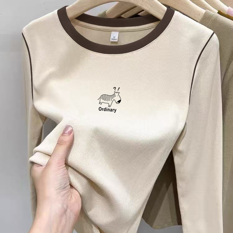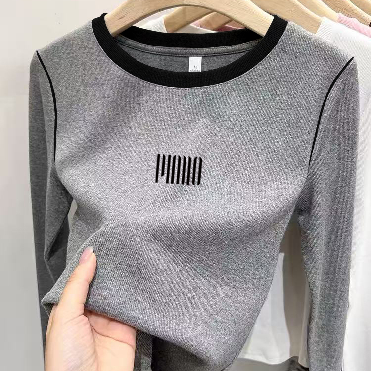 潮牌打底衫 正肩线条长袖 女秋冬季 加厚款 t恤保暖上衣 新款 2025新款
