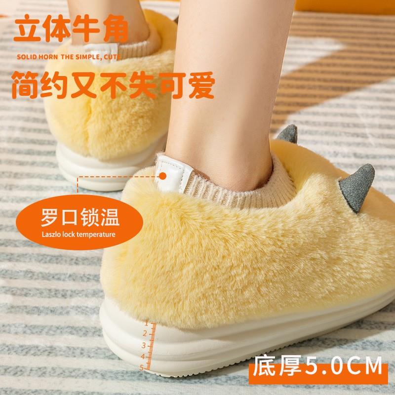 女冬季 5CM高跟棉拖鞋 女士冬天包跟室内加厚情侣室外厚底卡通棉鞋
