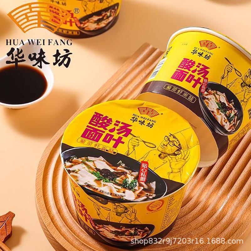 华味坊酸汤面叶紫菜虾米味110g桶装 酸辣蒸煮面速食冲泡面片方便面