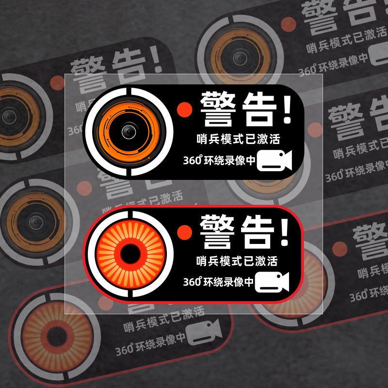 哨兵模式 饰随意贴 监控警示贴防刮蹭碰瓷侧窗贴纸360度录像车贴装