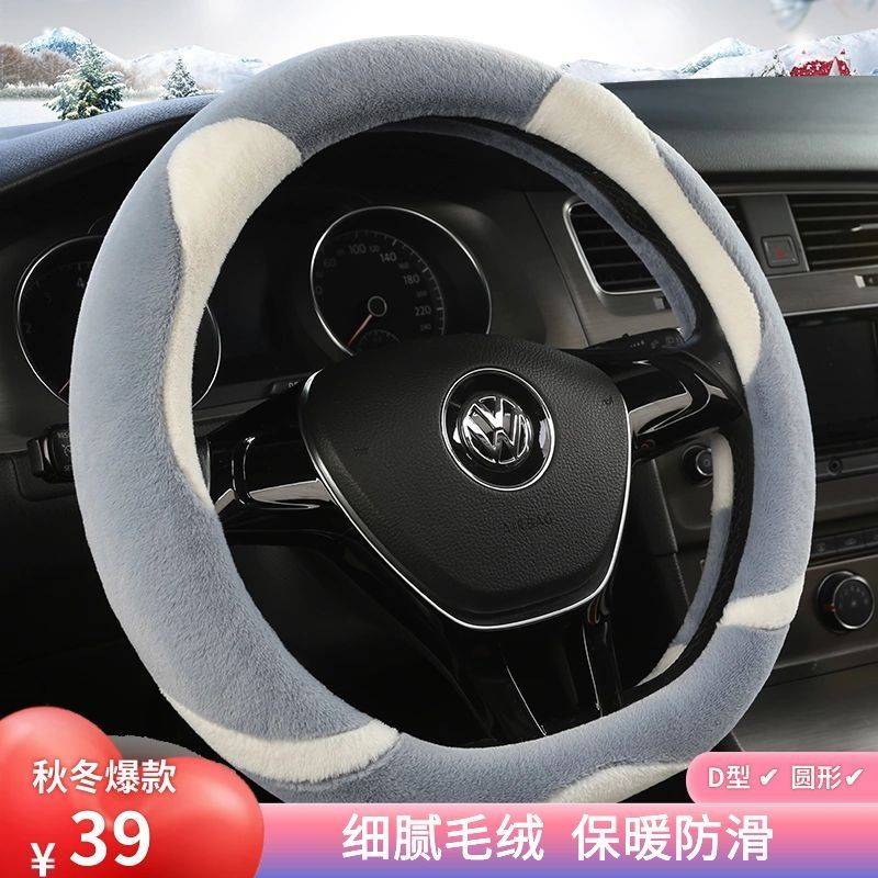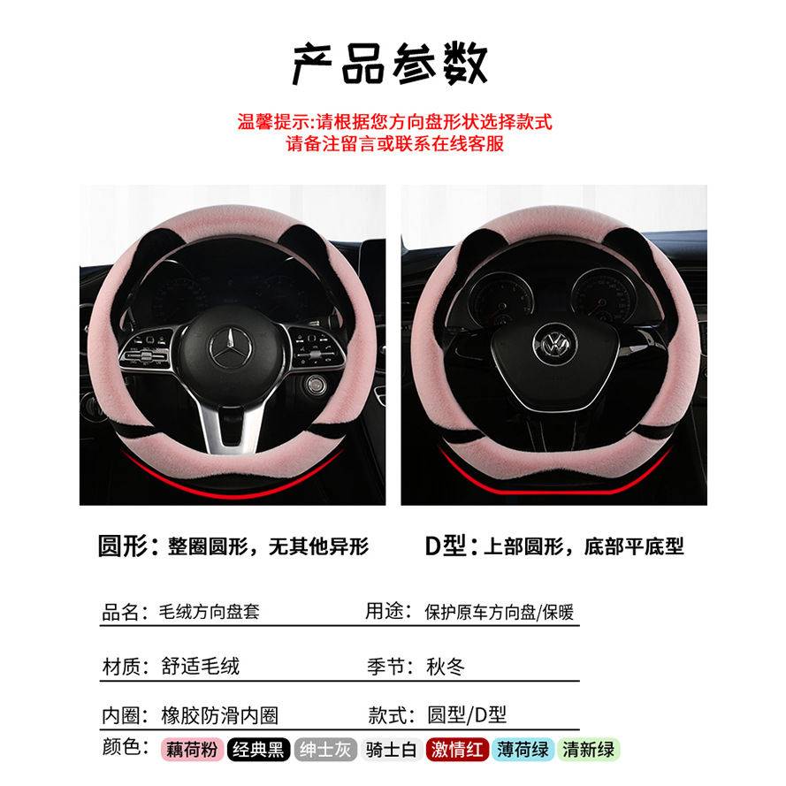 2024新款 毛绒保暖防滑汽车方向盘套卡通网红女神把套冬天D型 冬季