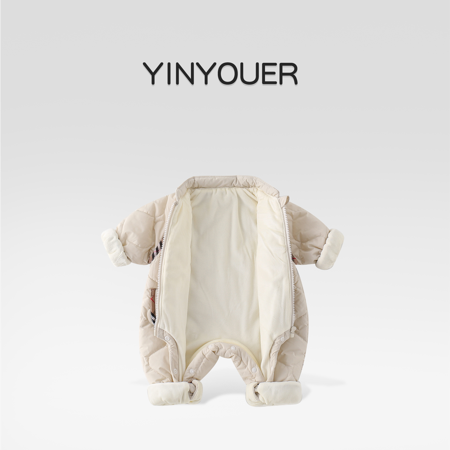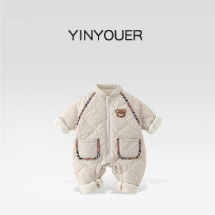 外套保暖爬服潮 宝宝薄棉夹棉连体衣秋冬季 婴儿衣服秋冬装 2025新款