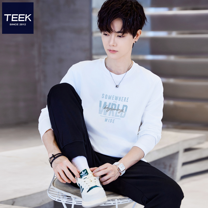 百搭大学生日系秋装 TEEK秋季 重磅打底衫 T恤男士 上衣服 设计感长袖