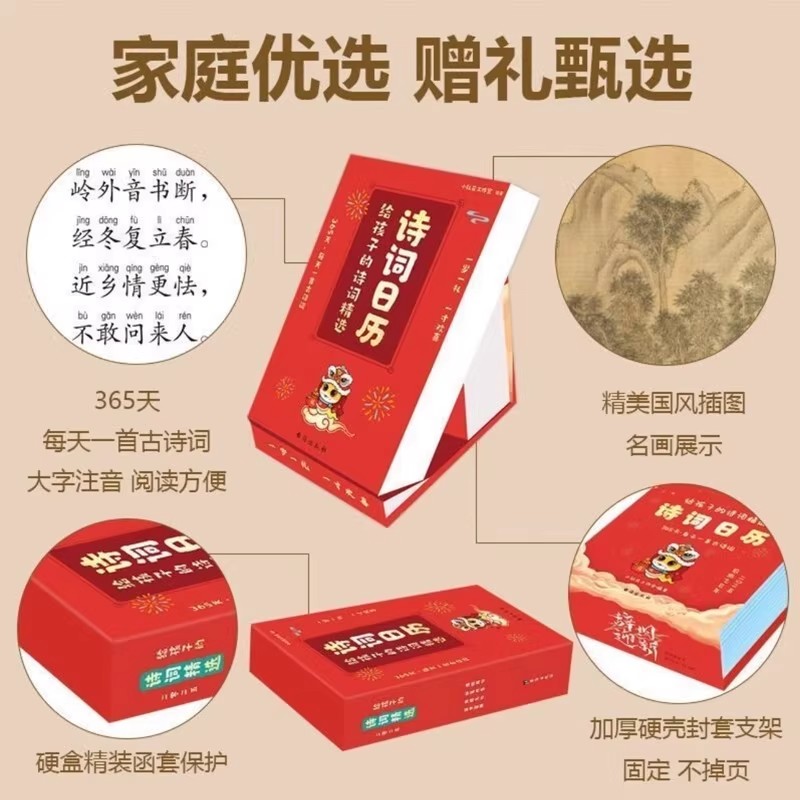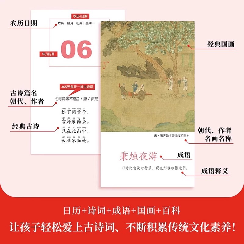 诗词给孩子 诗词日历每日一首古诗词2026年新款 古诗词精选诗词日历诗画日历台历人间有味是清欢全彩蛇年公历农历节日 抖音同款