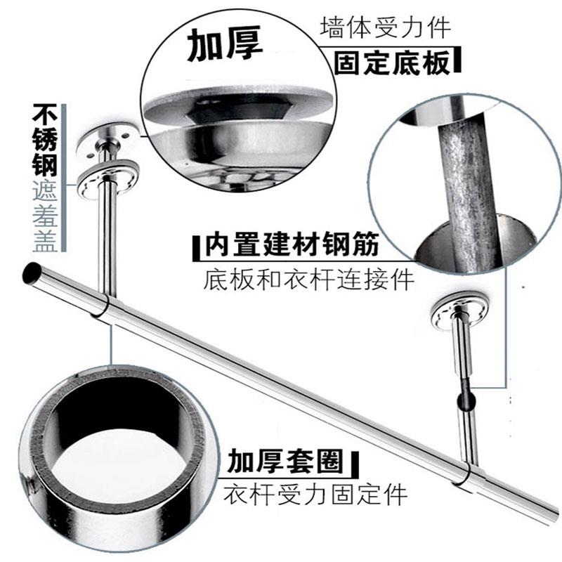 加粗32mm全不锈钢晾衣杆阳台顶装 一整根单双杆晒衣杆晾衣架 固定式