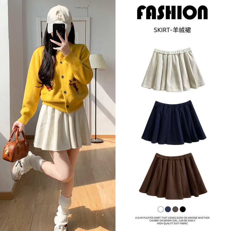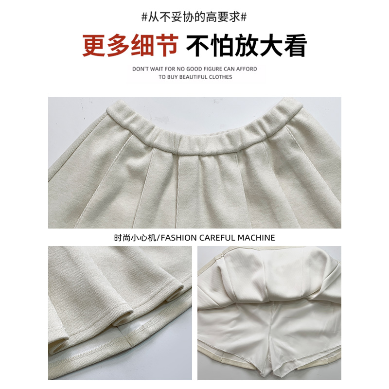 米白色羊绒百褶裙女春秋季 高腰少女风a字防走光毛呢短裙 2025新款