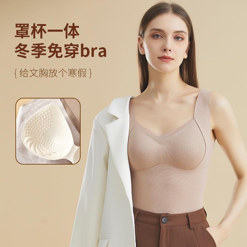 蝶安芬无痕保暖背心女打底春夏加绒加厚内搭带胸垫一体式 发热内衣