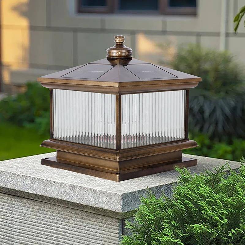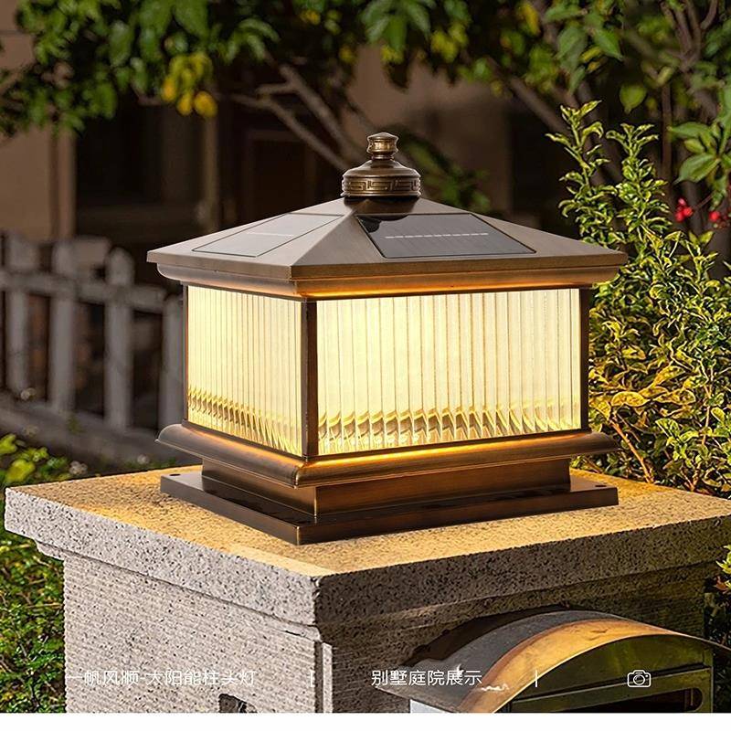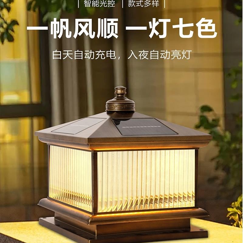 太阳能竖纹玻璃柱头灯庭院户外别墅花园家用围墙照明灯防水室外