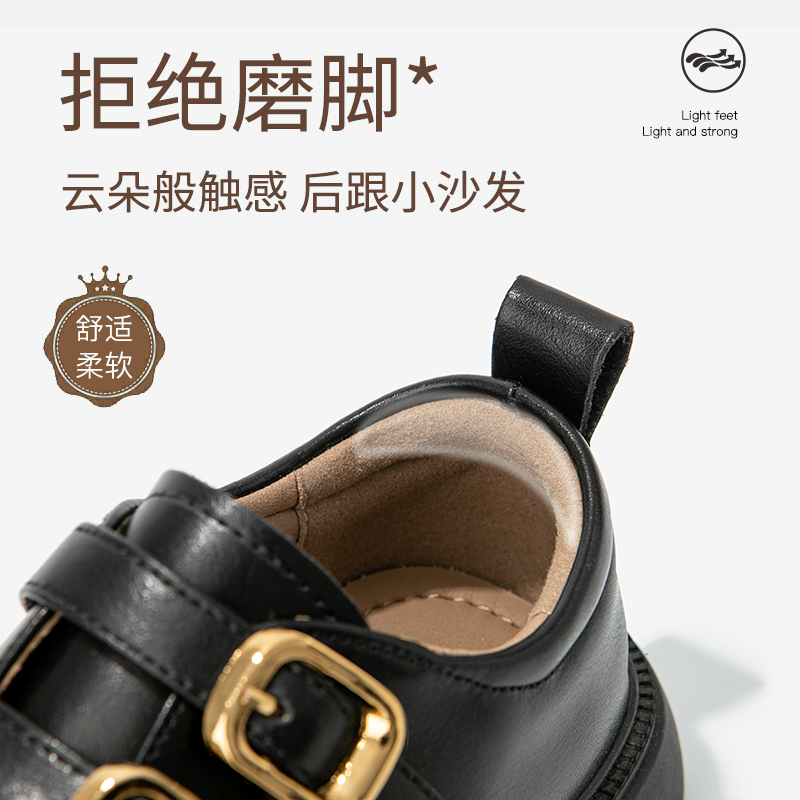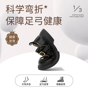 秋冬季 2025新款 软底乐福女孩 子儿童黑色洋气公主小皮鞋 FVM女童鞋