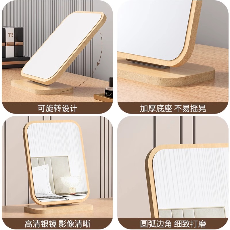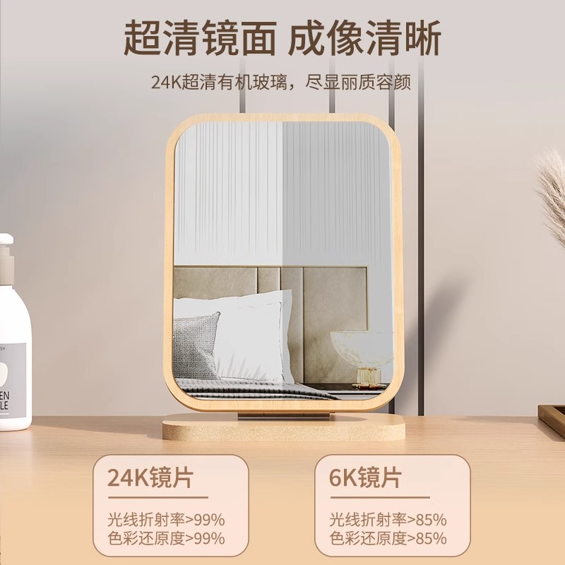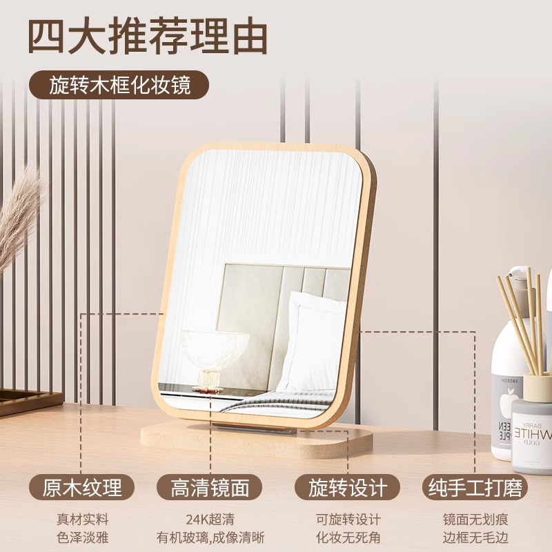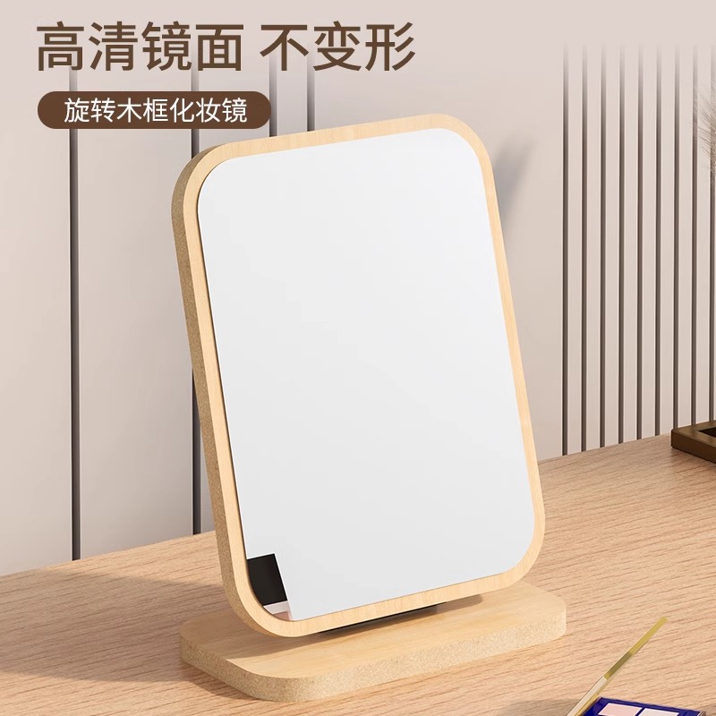 镜子化妆镜梳妆镜家用木质旋转镜子女生卧室宿舍台式 桌面梳妆台镜
