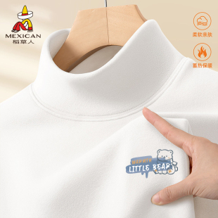 休闲秋冬打底纯棉内搭T t恤男士 明星同款 MrBu布先生长绒棉白色长袖