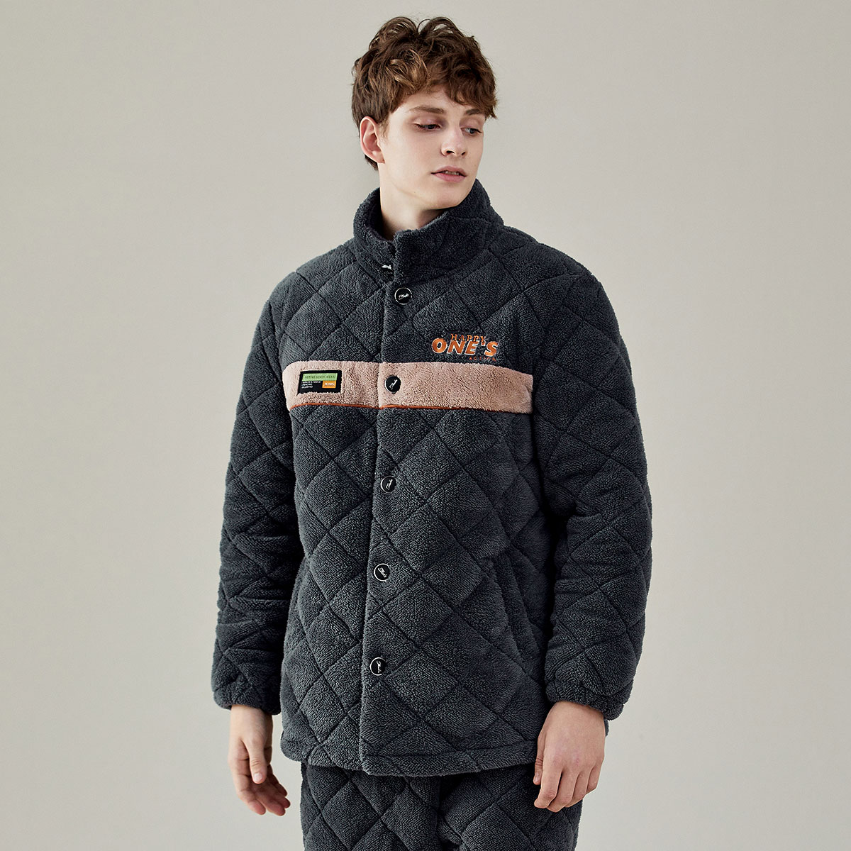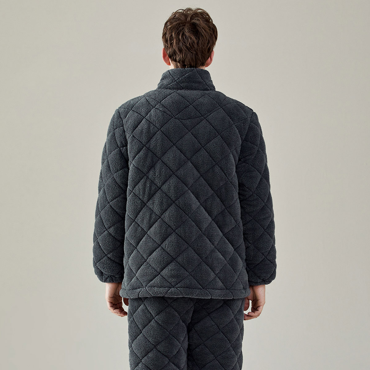 家居服套装 芬腾睡衣男冬季 三层夹棉加厚加绒立领保暖珊瑚绒秋冬款