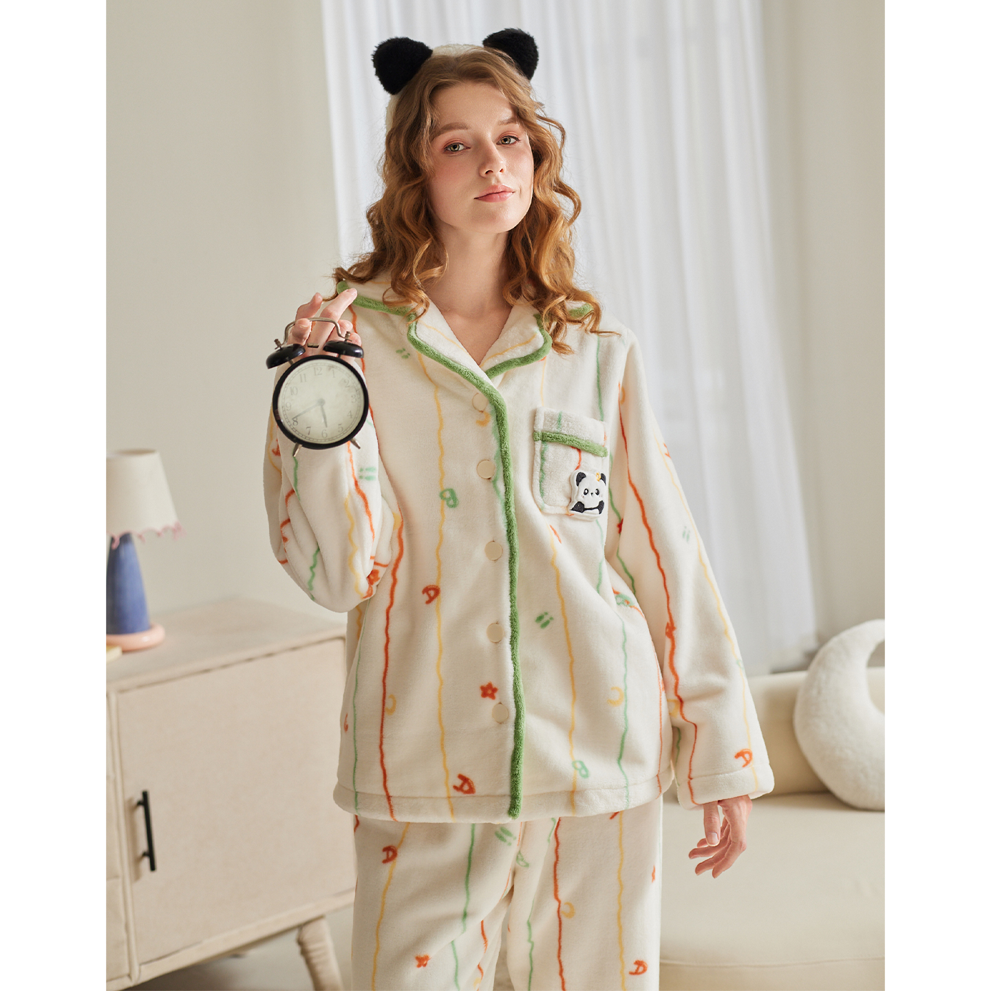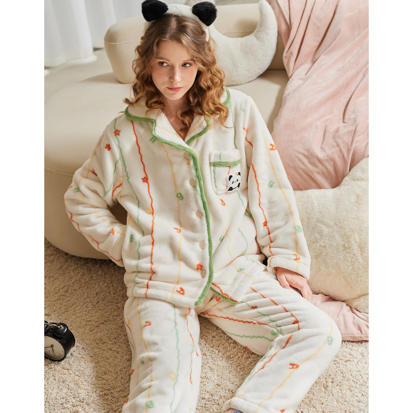 家居服套装 芬腾女士睡衣秋冬珊瑚绒保暖长袖 卡通可爱加绒加厚大码
