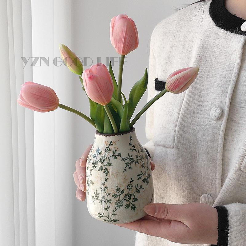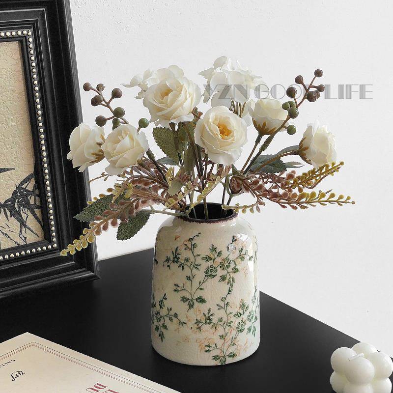 法式 饰花器 简约现代奶油风陶瓷花瓶复古水培插花高级感客厅餐桌装