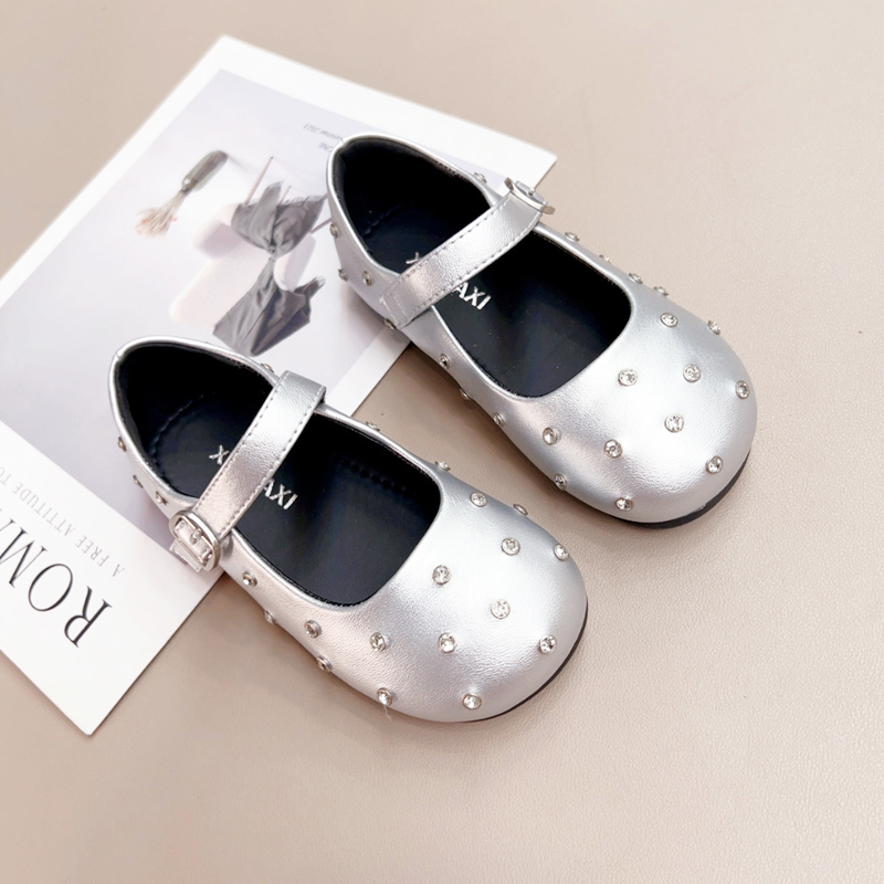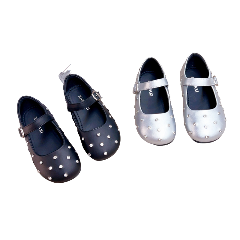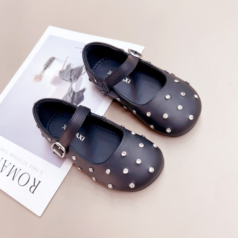 童鞋 女孩表演出单鞋 2025秋季 儿童水钻黑色小公主鞋 新款 女童小皮鞋