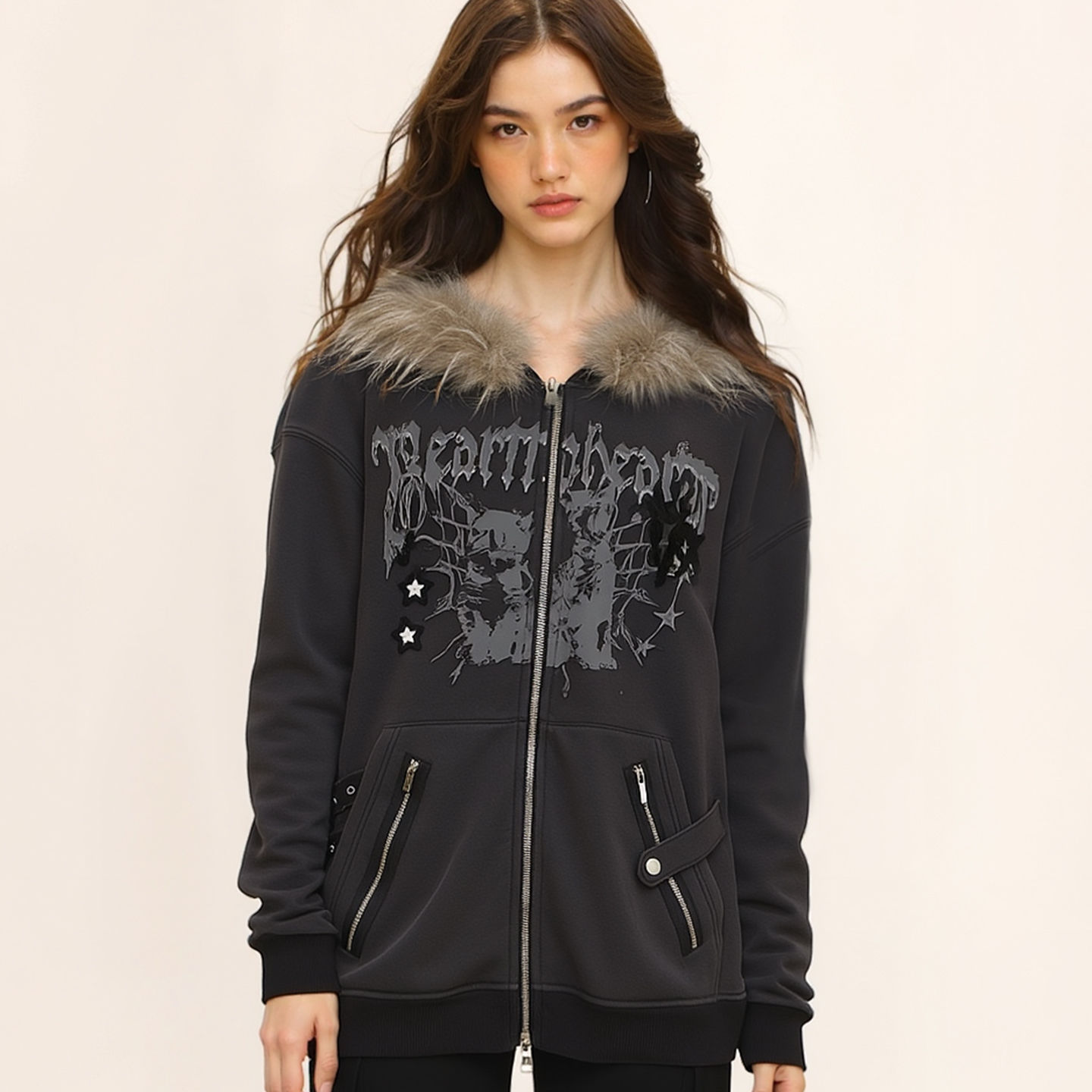 复古字母印花毛领卫衣女宽松休闲百搭长袖 美式 上衣 25冬新品
