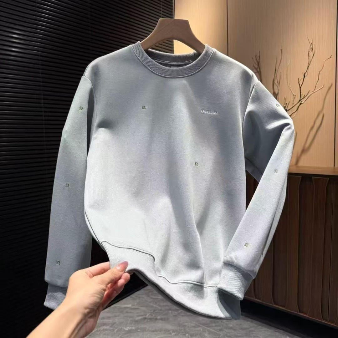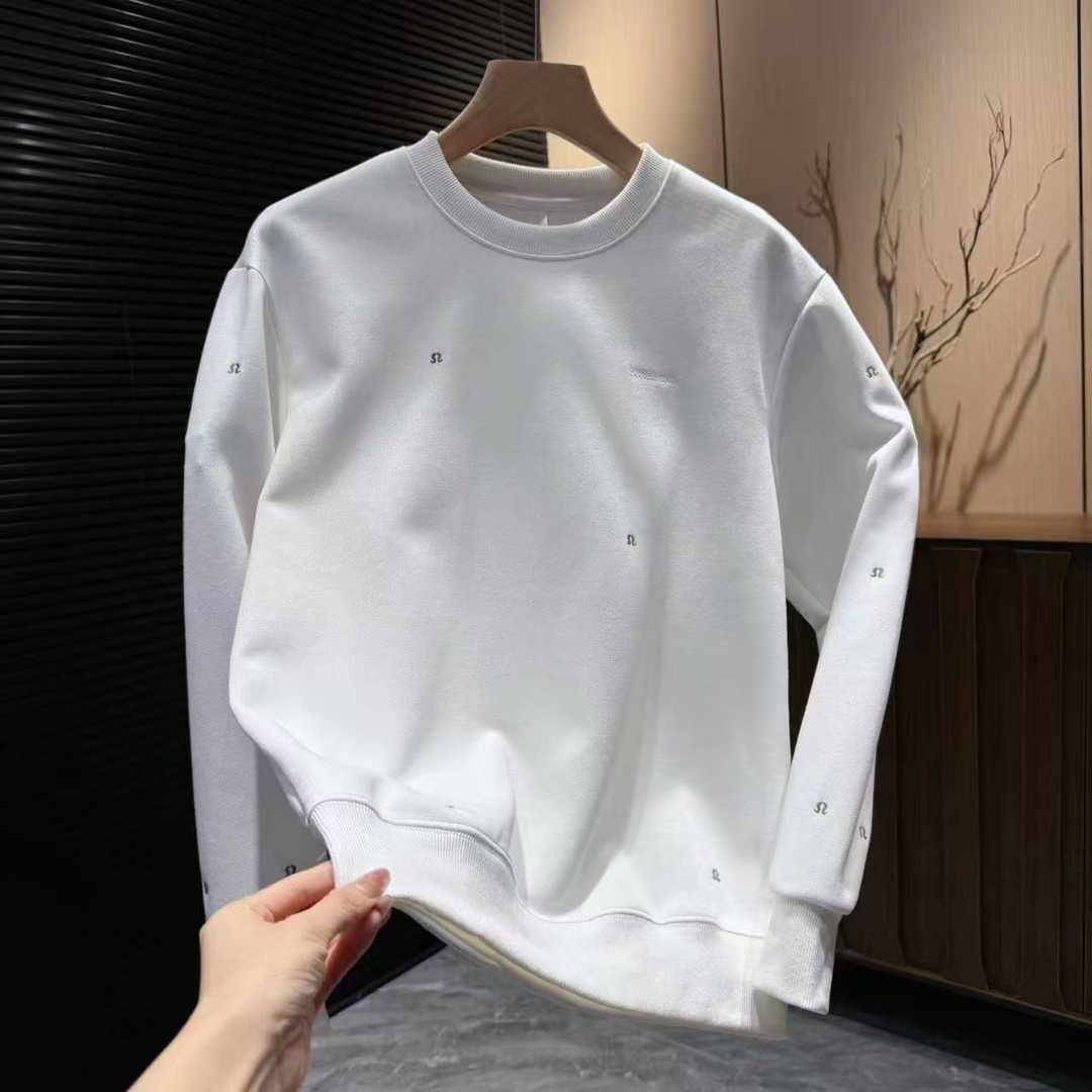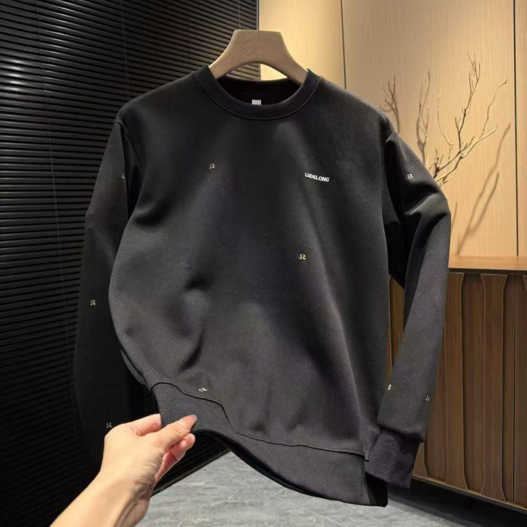 打底衫 2025秋冬季 潮流百搭休闲长袖 圆领套头卫衣男士 简约刺绣时尚