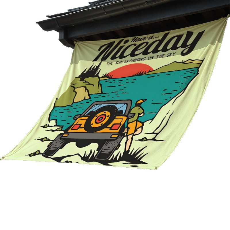 户外遮阳布防水防晒隔热天幕挂布庭院露台吊顶氛围布置印花装 饰布