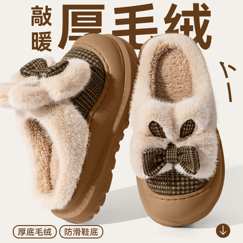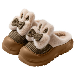 厚底增高保暖加绒蝴蝶结拖鞋 2025新款 女秋冬外 女士冬季 高跟棉拖鞋