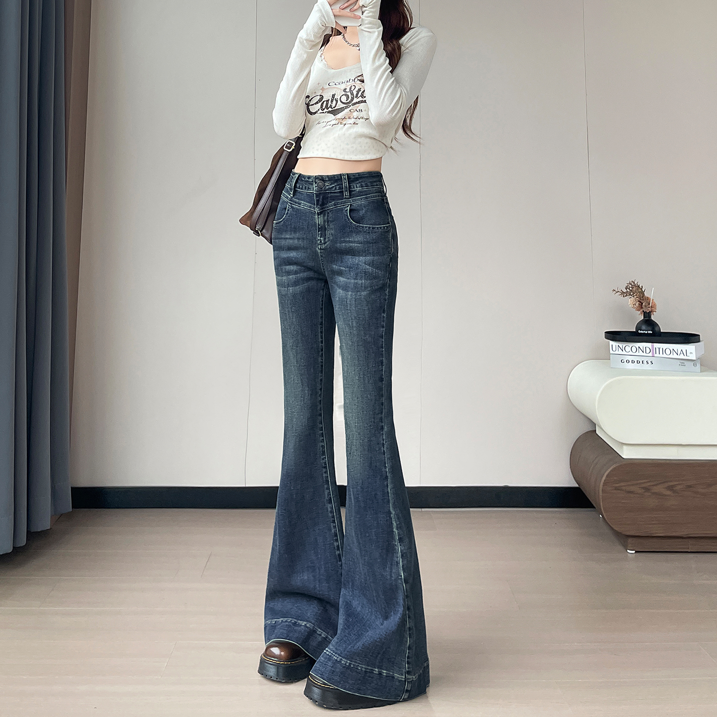 牛仔裤 5袋式 秋季 微弹高腰喇叭长裤 HM女装 新款 1109636 博主推荐