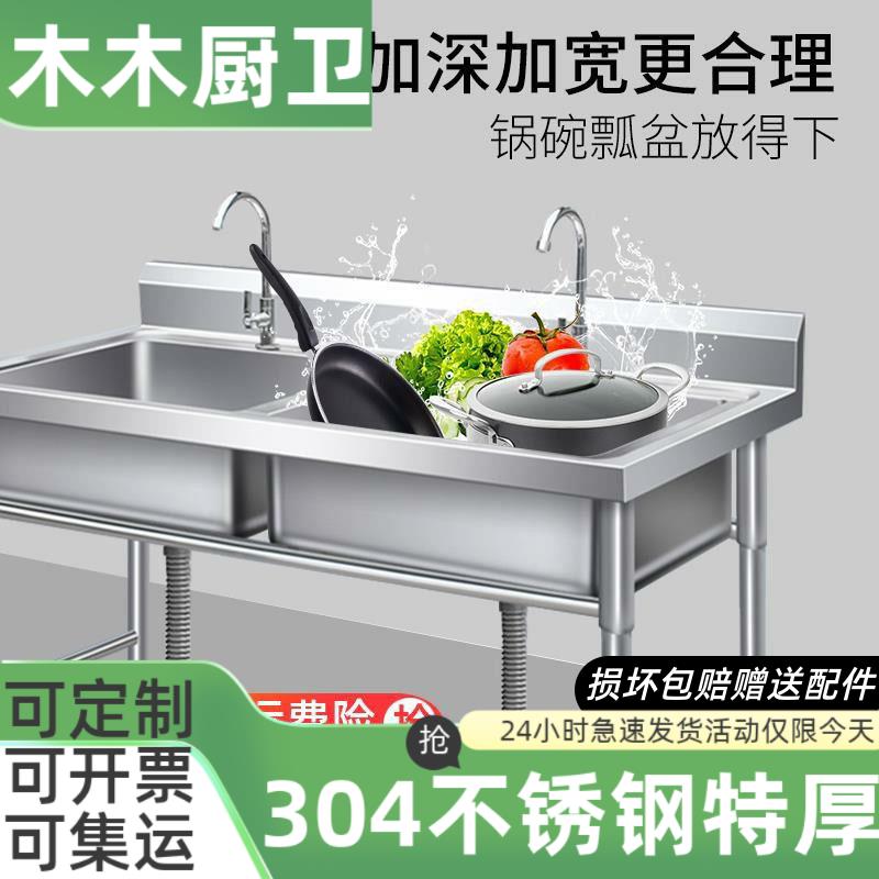304不锈钢水槽商用厨房洗菜盆单水槽洗手盆双水槽洗碗池家用带支