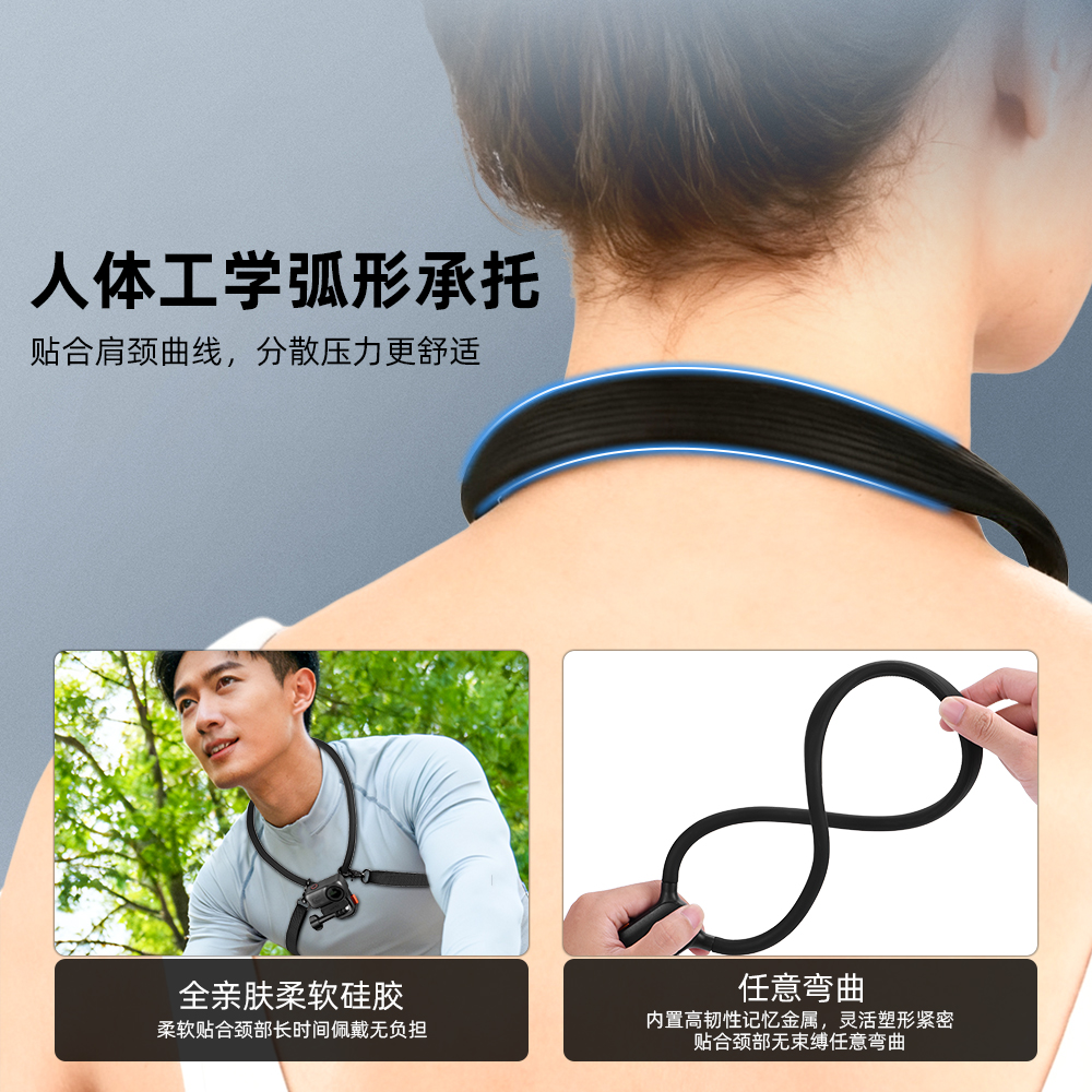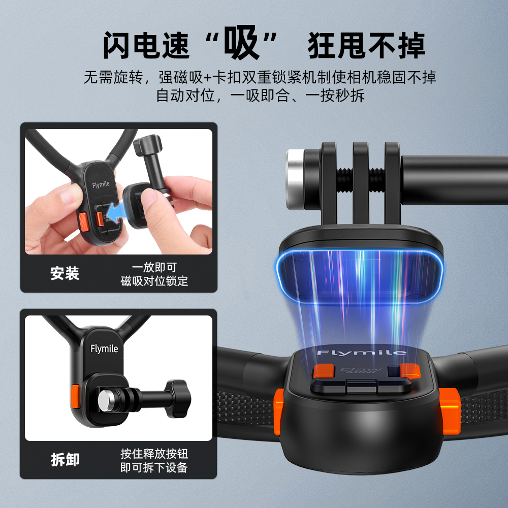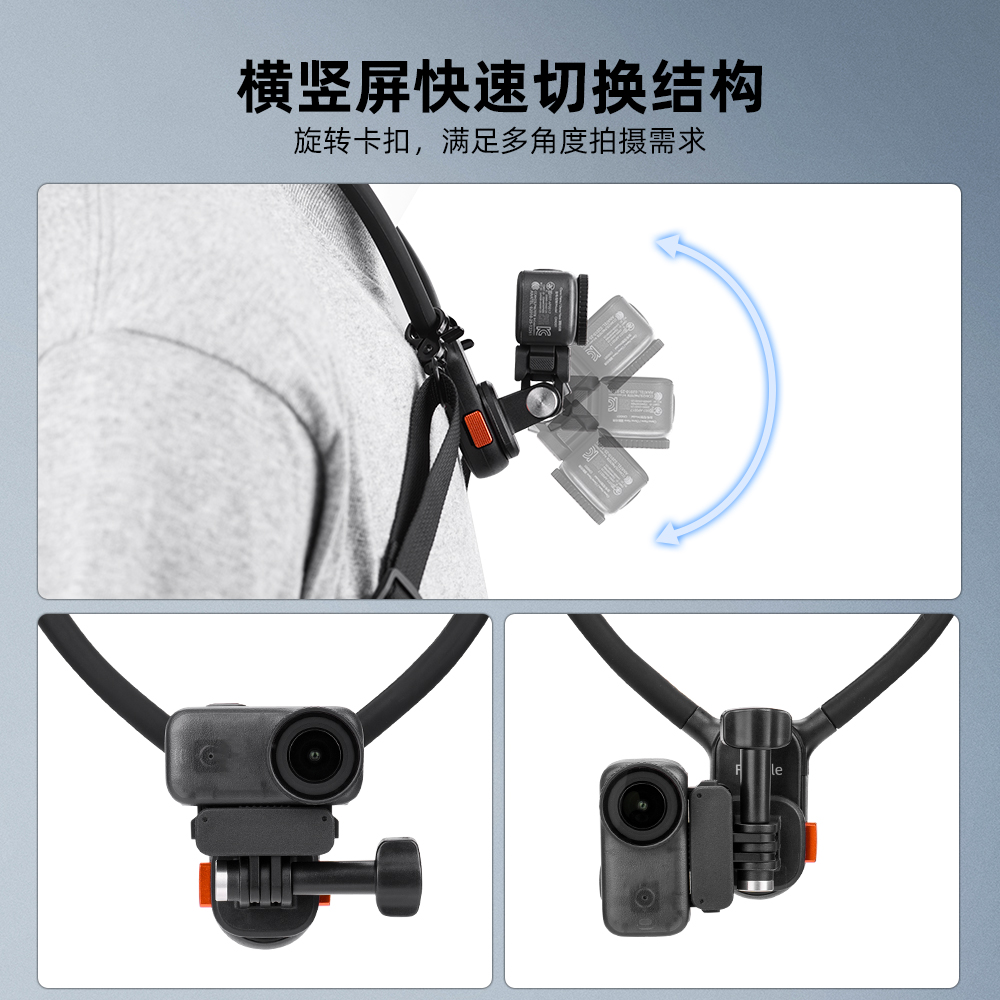 Flymile适用大疆Nano磁吸快拆挂脖支架 Action5Pro运动相机第一人称横竖拍胸前固定直播骑行钓鱼配件