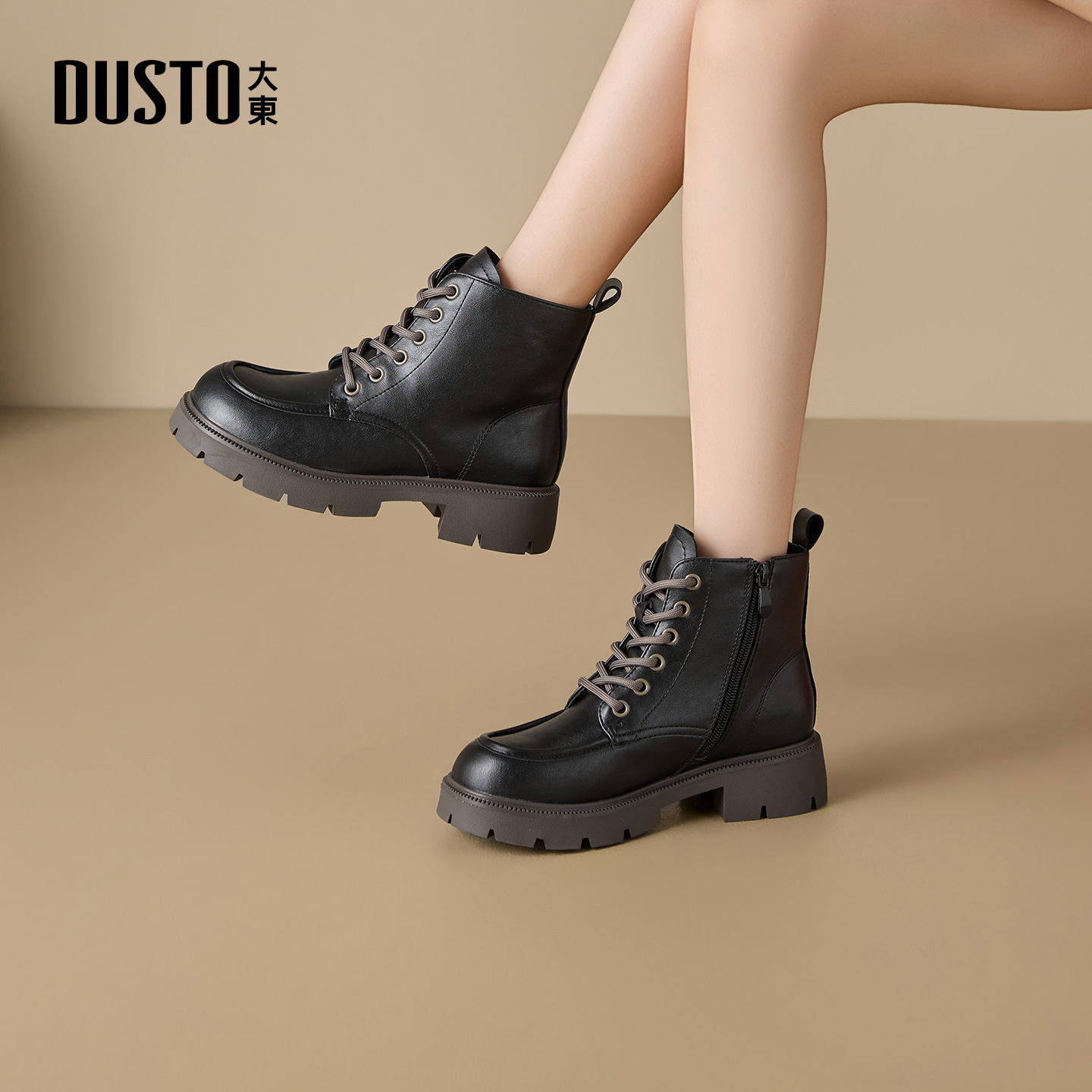 美拉德棕色靴子厚底黑色短靴 秋复古女鞋 英伦风马丁靴女款 2025新款