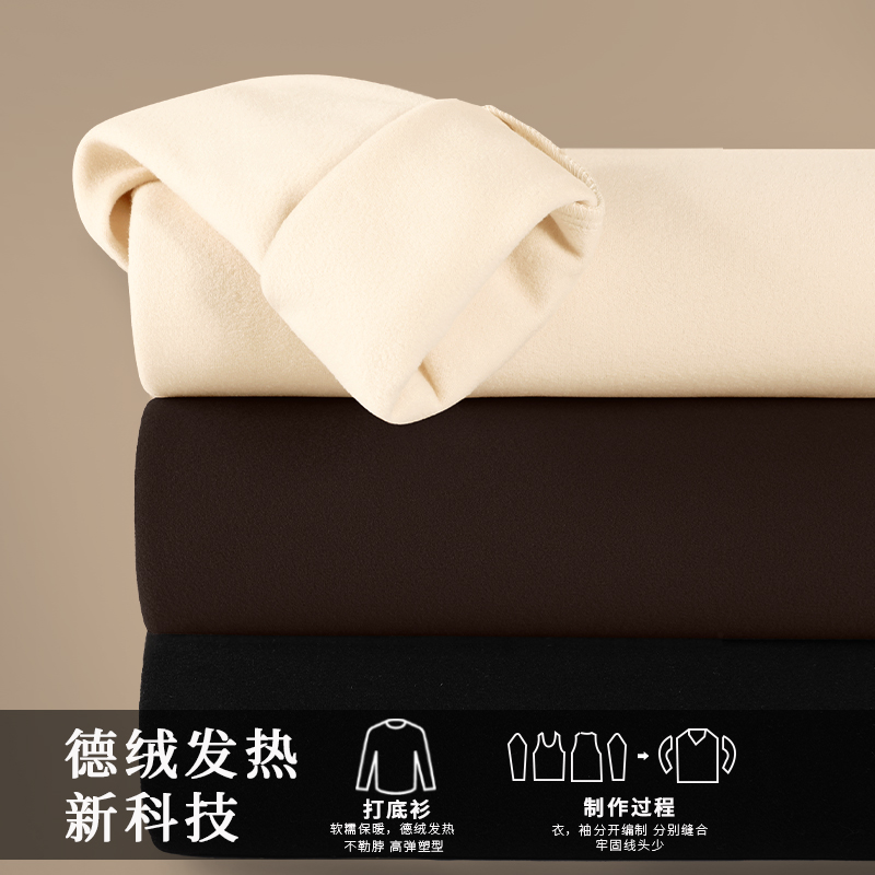 休闲百搭长袖 KV真维斯木耳边薄绒打底衫 加绒保暖时尚 2025新款 女款