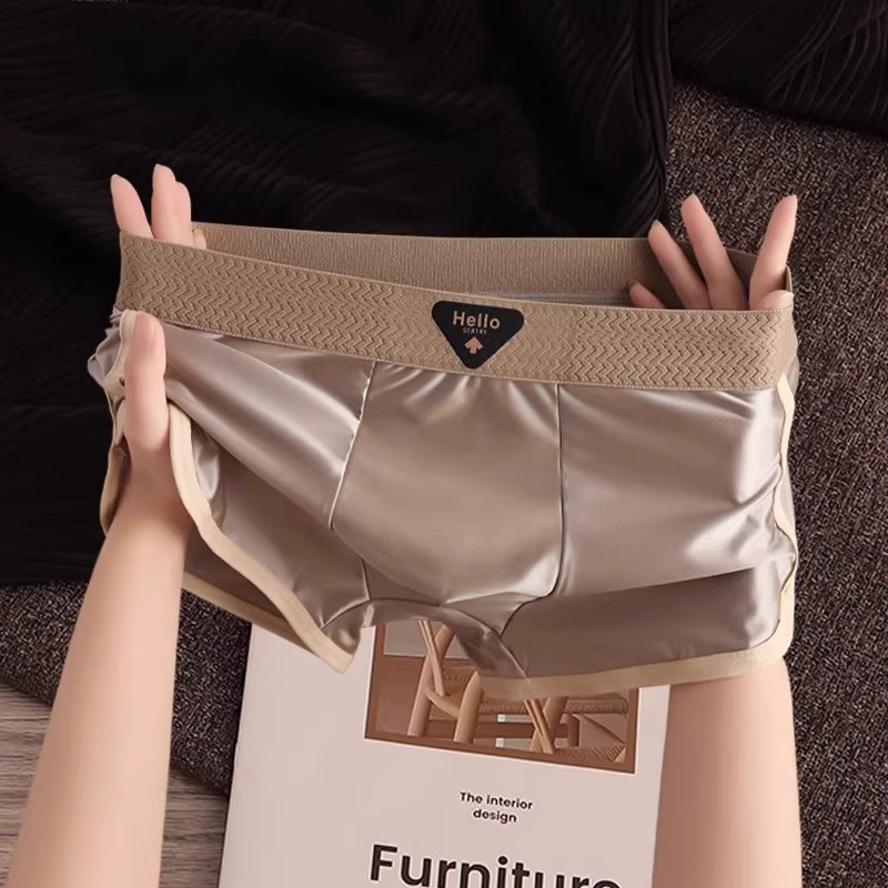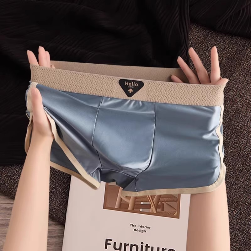 内裤 平角短裤 桑蚕丝裆2025新款 薄款 男生无痕运动夏季 冰丝缎面男士