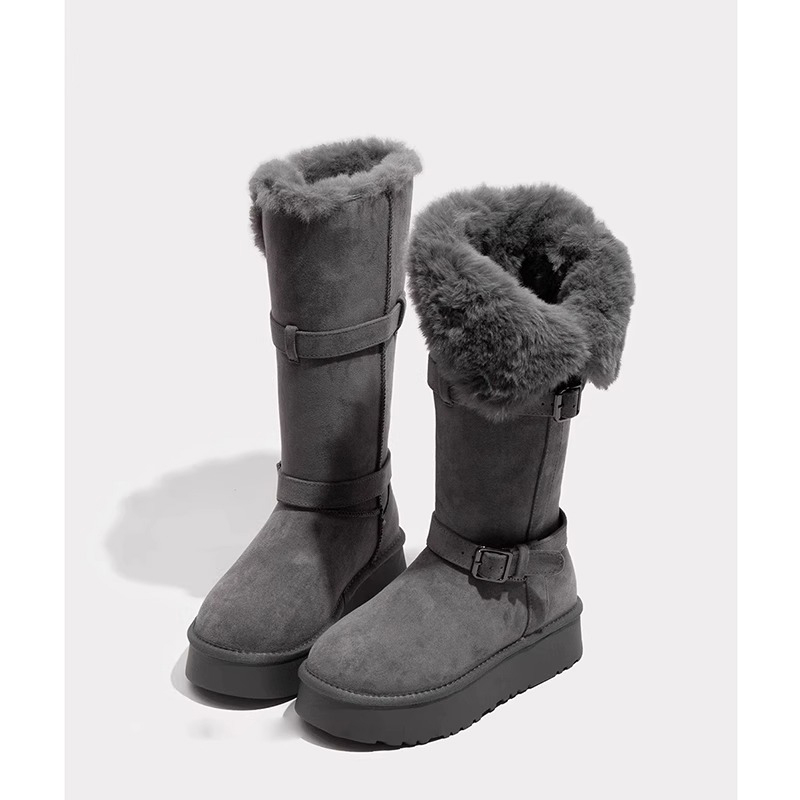 鞋 厚底加绒加厚中长筒雪地棉靴子棉鞋 子 新款 灰色雪地靴女2025冬季