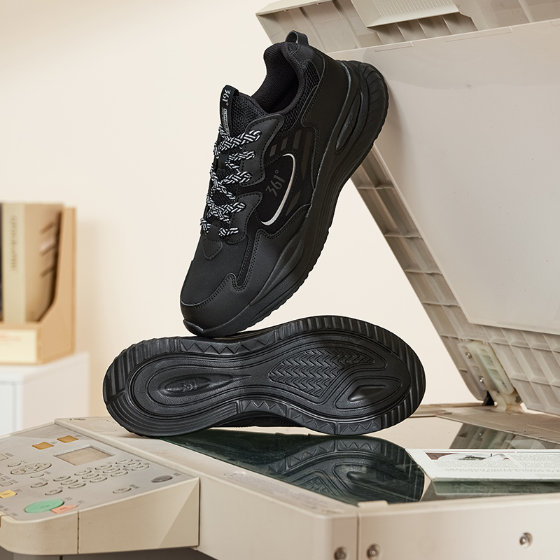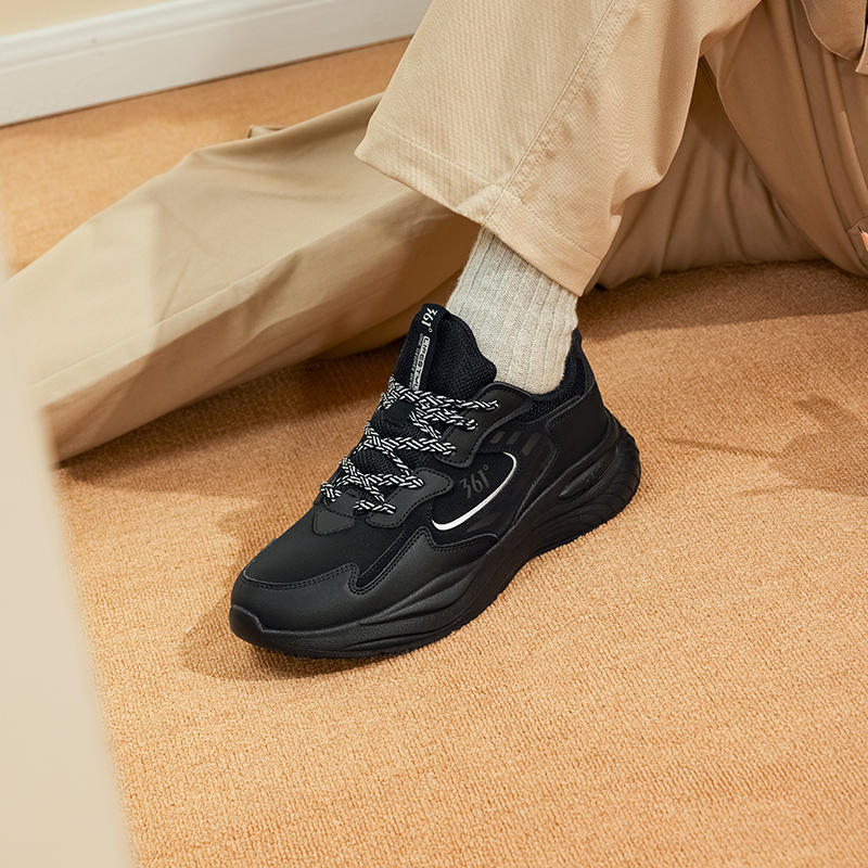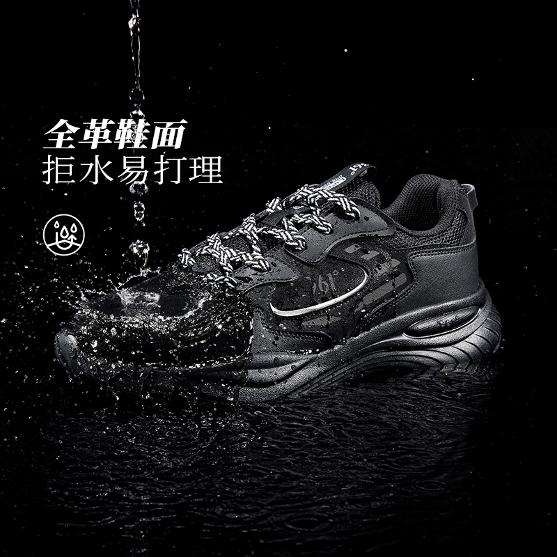 运动鞋 黑色皮面休闲鞋 男2025春秋新款 男款 防水轻便跑步鞋 361男鞋