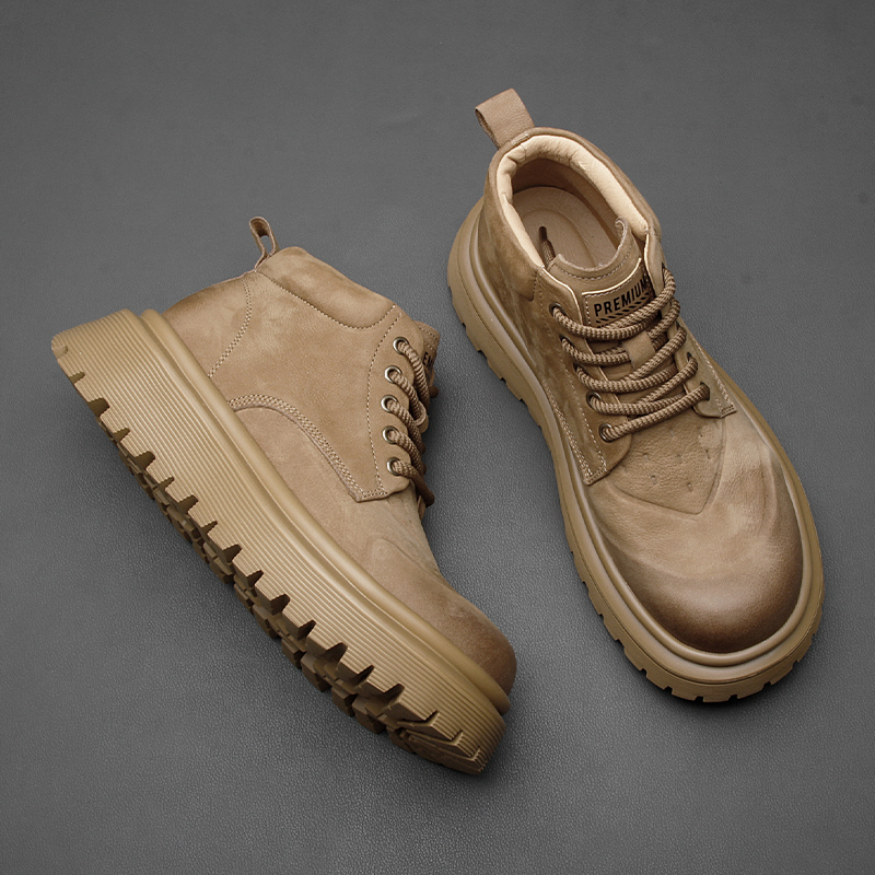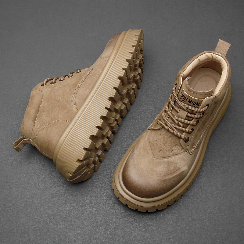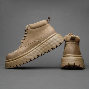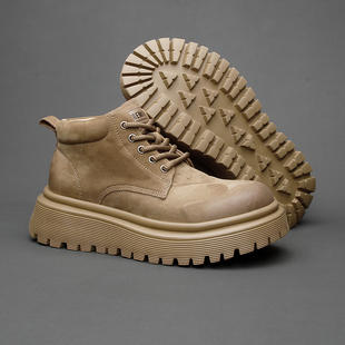 靴子 真皮防水厚底增高工装 森马马丁靴男秋季 高帮百搭休闲白色板鞋