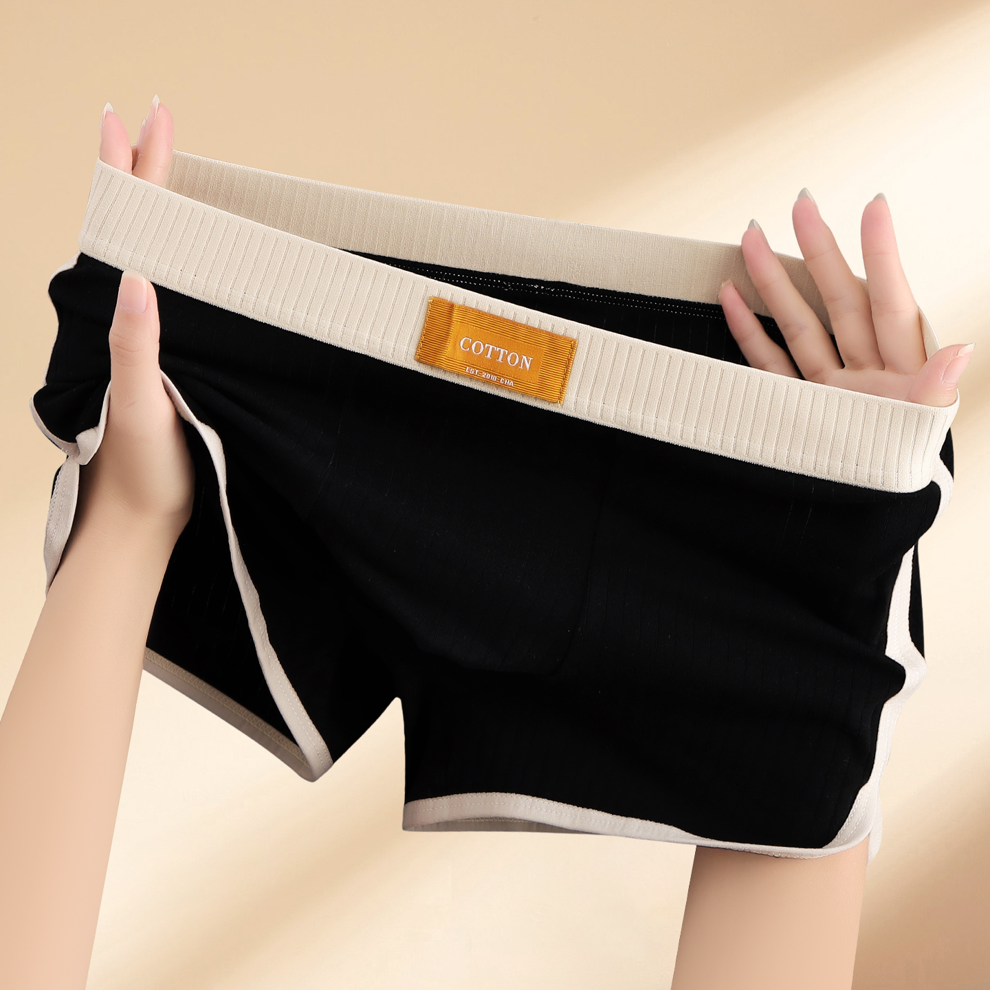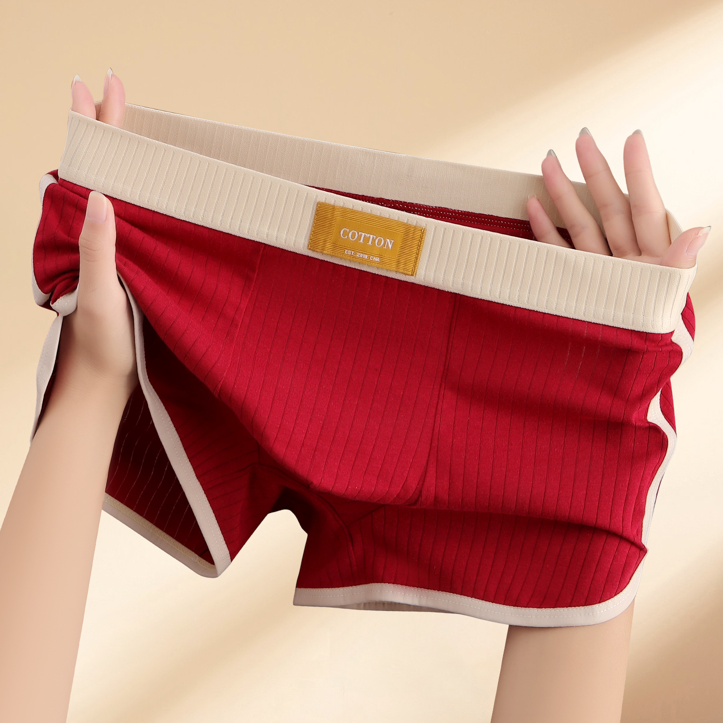 男款 运动平角短裤 男式 2025新款 透气男生四角裤 红内裤 个性 纯棉男士