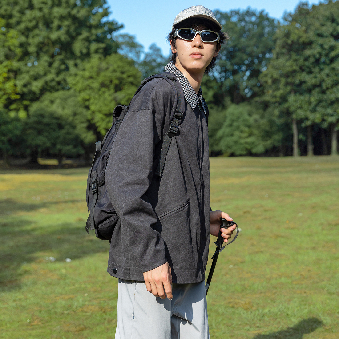 夹克25秋新棉服可选仿牛仔外套男装 海澜之家曹骏同款 山不在高工装