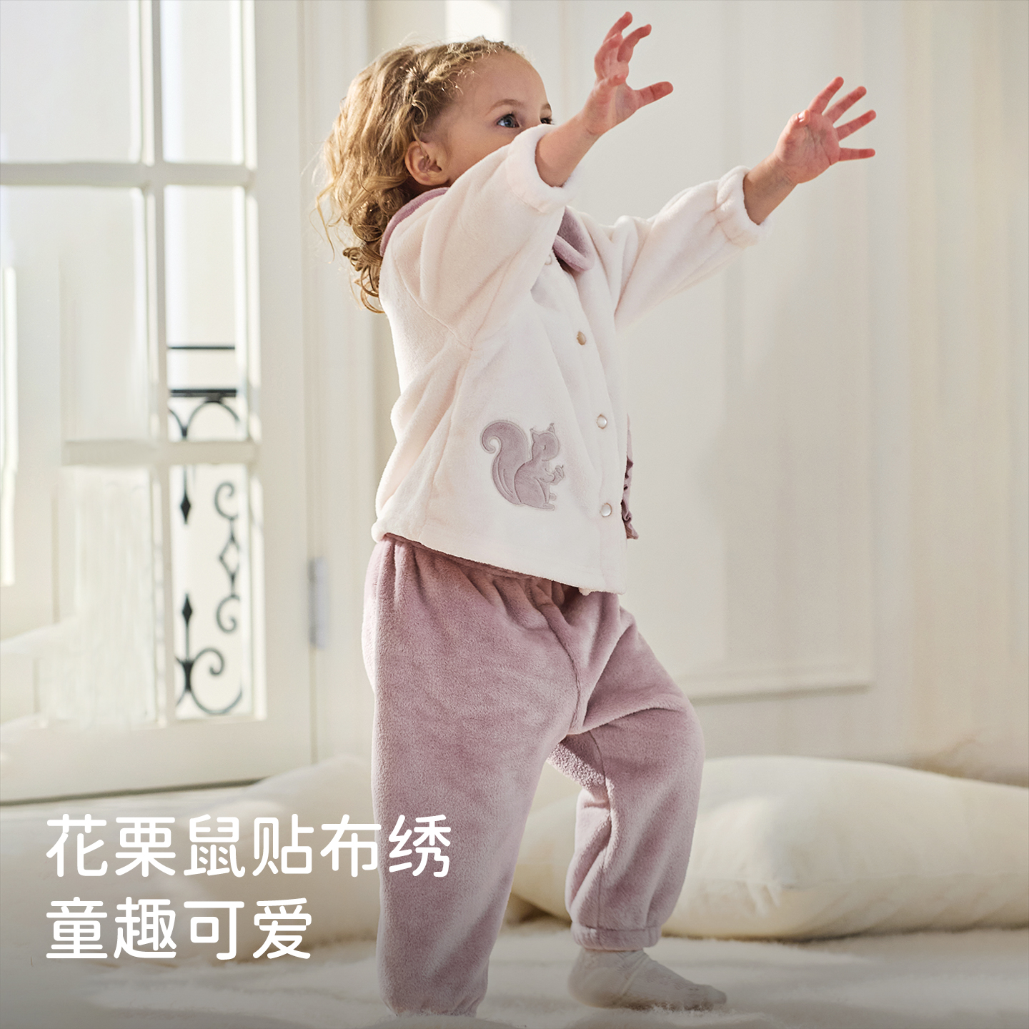 半边绒睡衣女秋冬保暖可爱卡通家居服套装 Gukoo 果壳新款