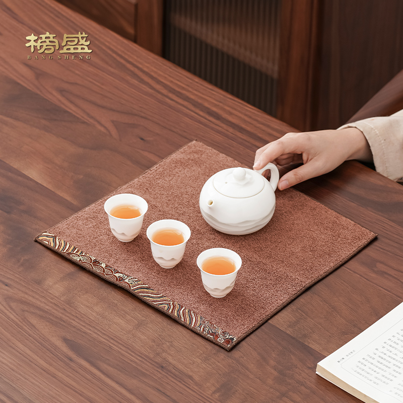 麂皮绒茶巾茶布茶桌毛巾抹布轻奢中式 吸水养壶巾茶垫功夫茶具配件