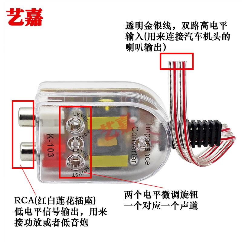 汽车音响高转低低音炮音频转换器低音频滤波器原车机音频输出改装