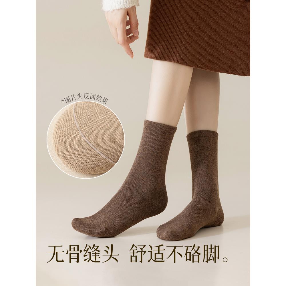 袜子女中筒袜秋冬季 黑色无骨袜长袜女 月子袜纯棉堆堆袜女配小皮鞋